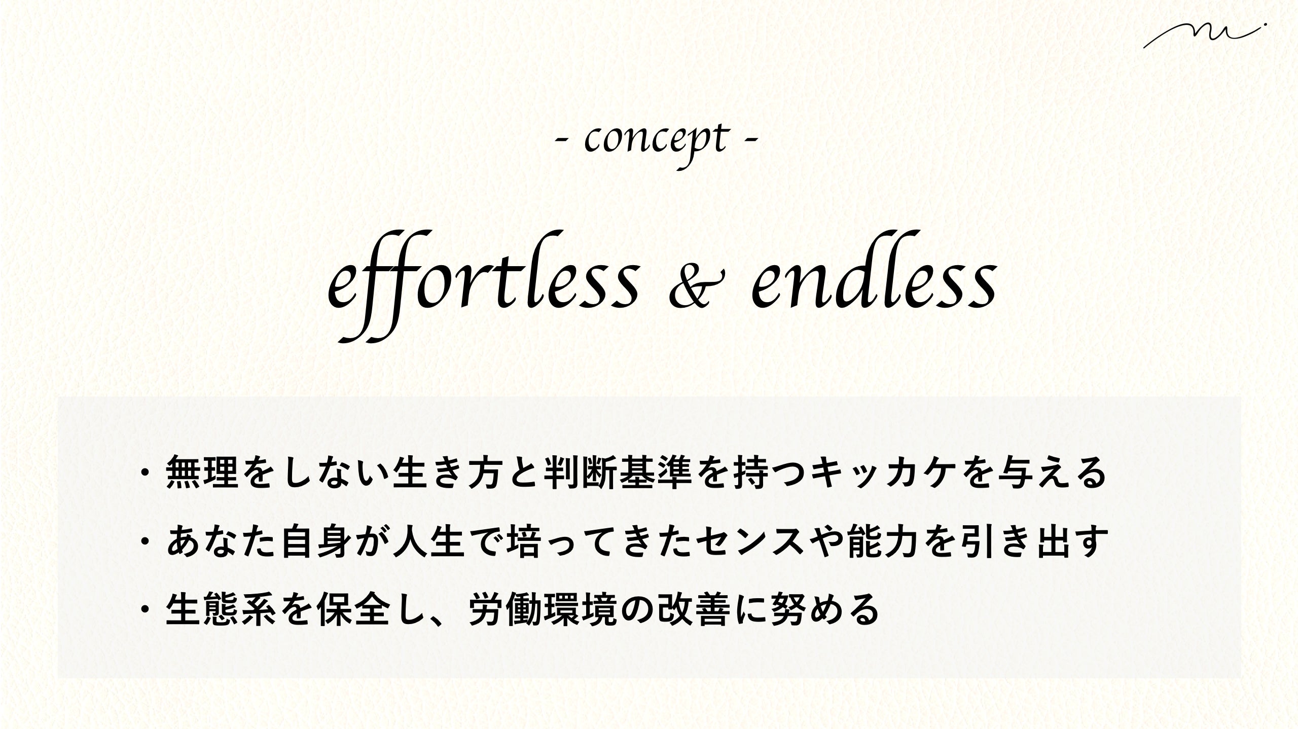今の時代に生きる私たち一人ひとりが、自らの生き方や生き様に対する無理をしない判断基準を持つキッカケをお届けすること。