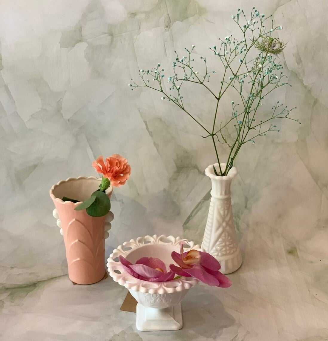 (私たちは、花瓶との出会いが花との習慣を創るという考えも持っております。)