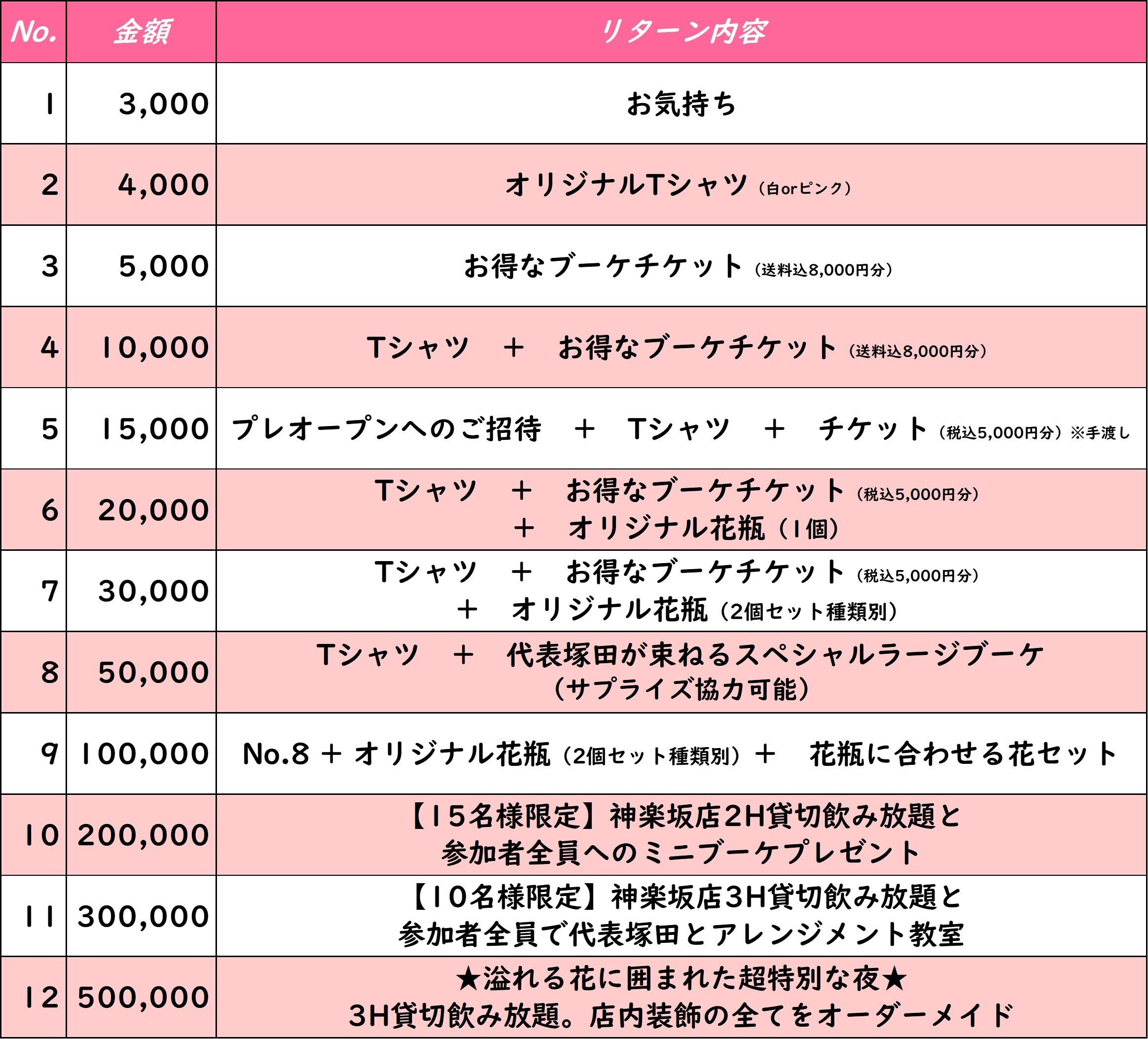 リターンにつきましては、数種類考えております。