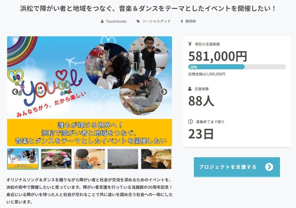 今回のイベントは当事業団の30周年の記念イベントとして企画し始めました。その中で、毎年よりイベントのスケールを大きくしてもっとみんなに広く知ってもらえるためにと、浜松駅前での開催を決めました。そのためのクラウドファンディングでした。