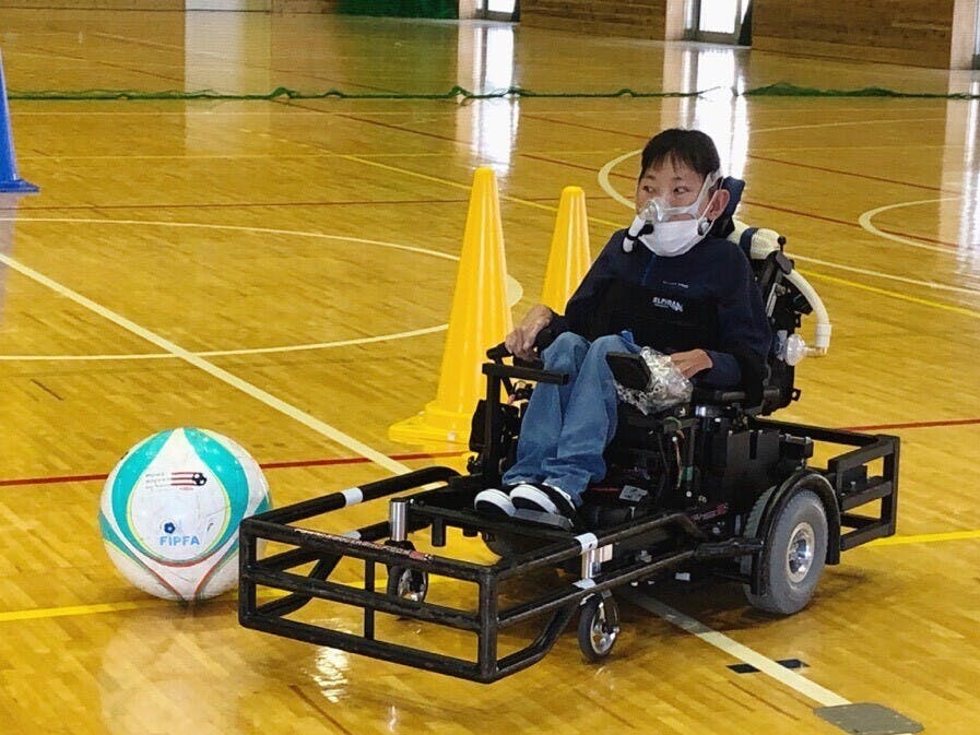 みなさんは電動車椅子サッカーを知っていますか?電動車椅子の前にフットガードという器具を取り付けて行うサッカーです。電動車椅子を巧みに操作して、パスやドリブル、回転してのシュートなど迫力いっぱいです。