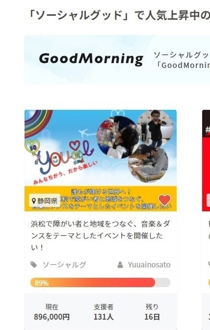 たくさんの応援ありがとうございます。現在目標の92%まで集まり、支援していただいた人数も135人を超えました。また、皆さんのおかげで昨日初めてGoodmorningの人気順の1位に掲載され、1000PV近くもみていただいていることも本当にうれしく思います。