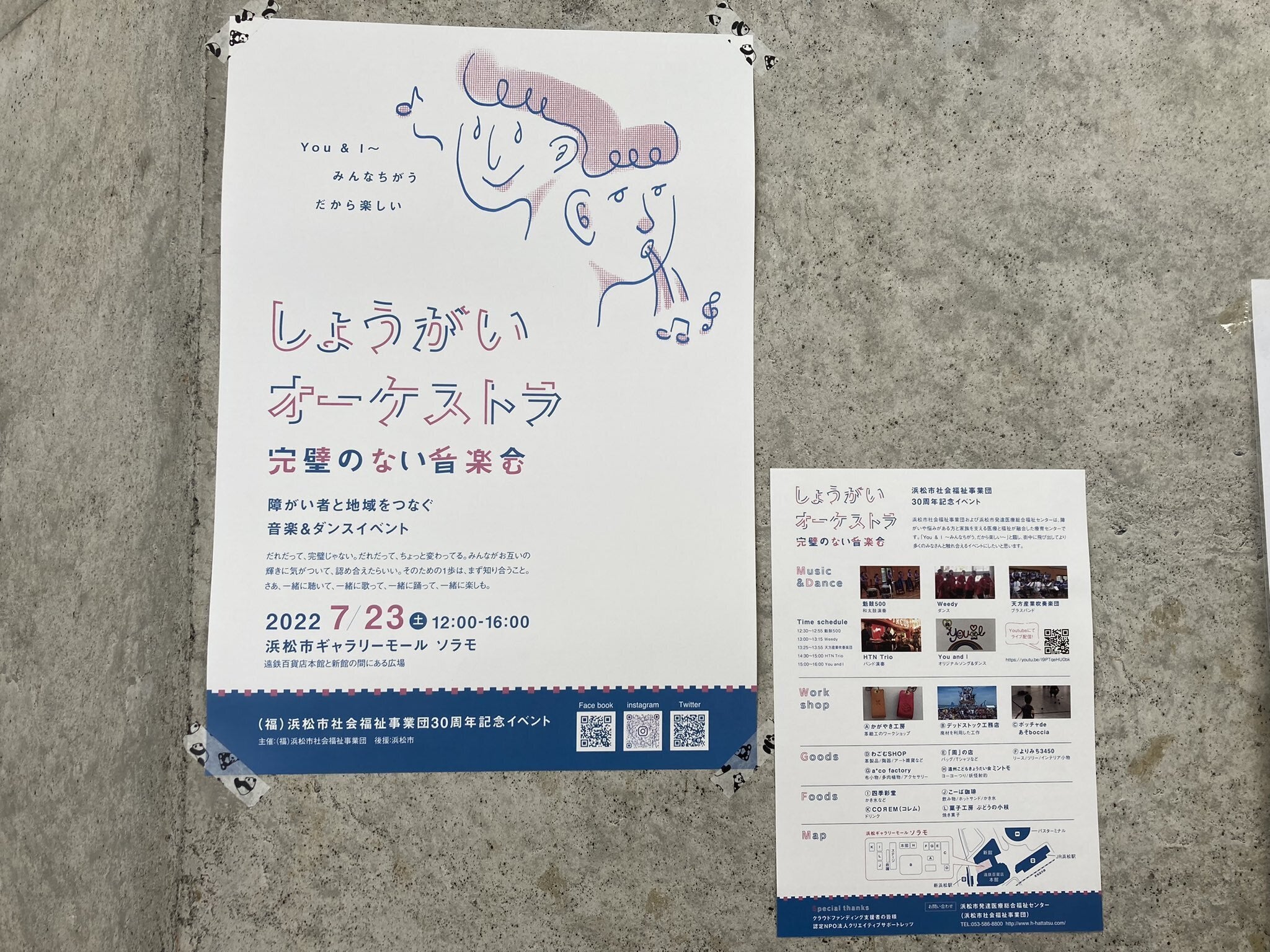 その結果現在のところ、イベントは開催する予定です。午前中の30周年記念講演会については、密を避けるためにオンライン配信のみでの開催になりしたが、午後の音楽とダンスのイベント「しょうがいオーケストラ」については感染対策を徹底し、浜松駅前の「ソラモ」で皆さんにもご来場いただきながら行いたいと思います。