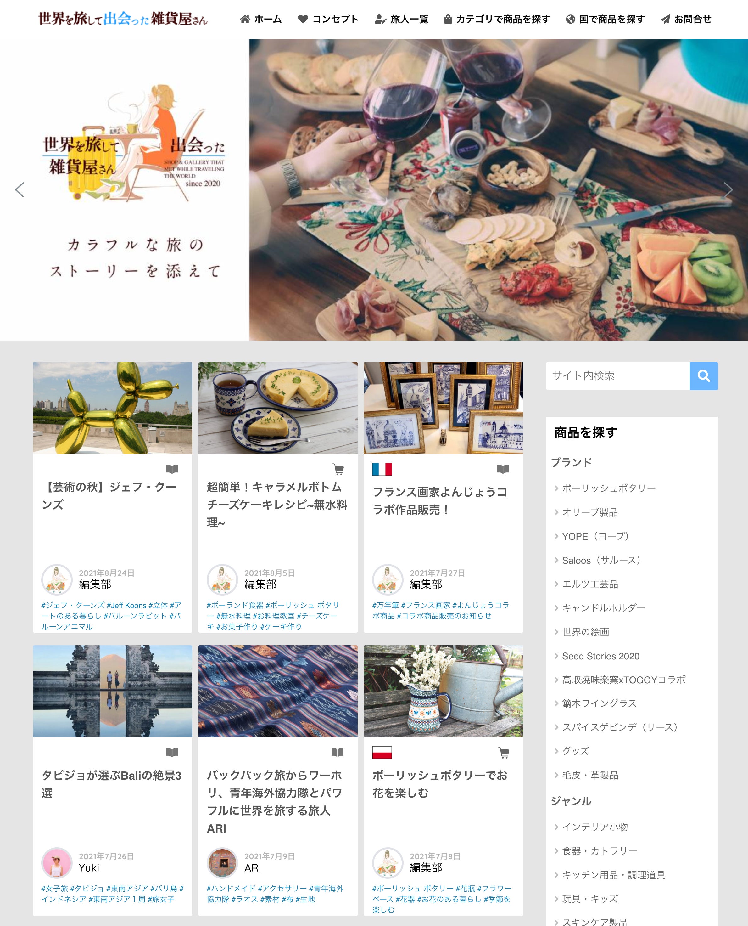 「世界を旅して出会った雑貨屋さん」は、世界中の旅のストーリーと、その旅の中で出会った雑貨を発信してシェアリングする "メディア型のオンライン雑貨ストア"です。