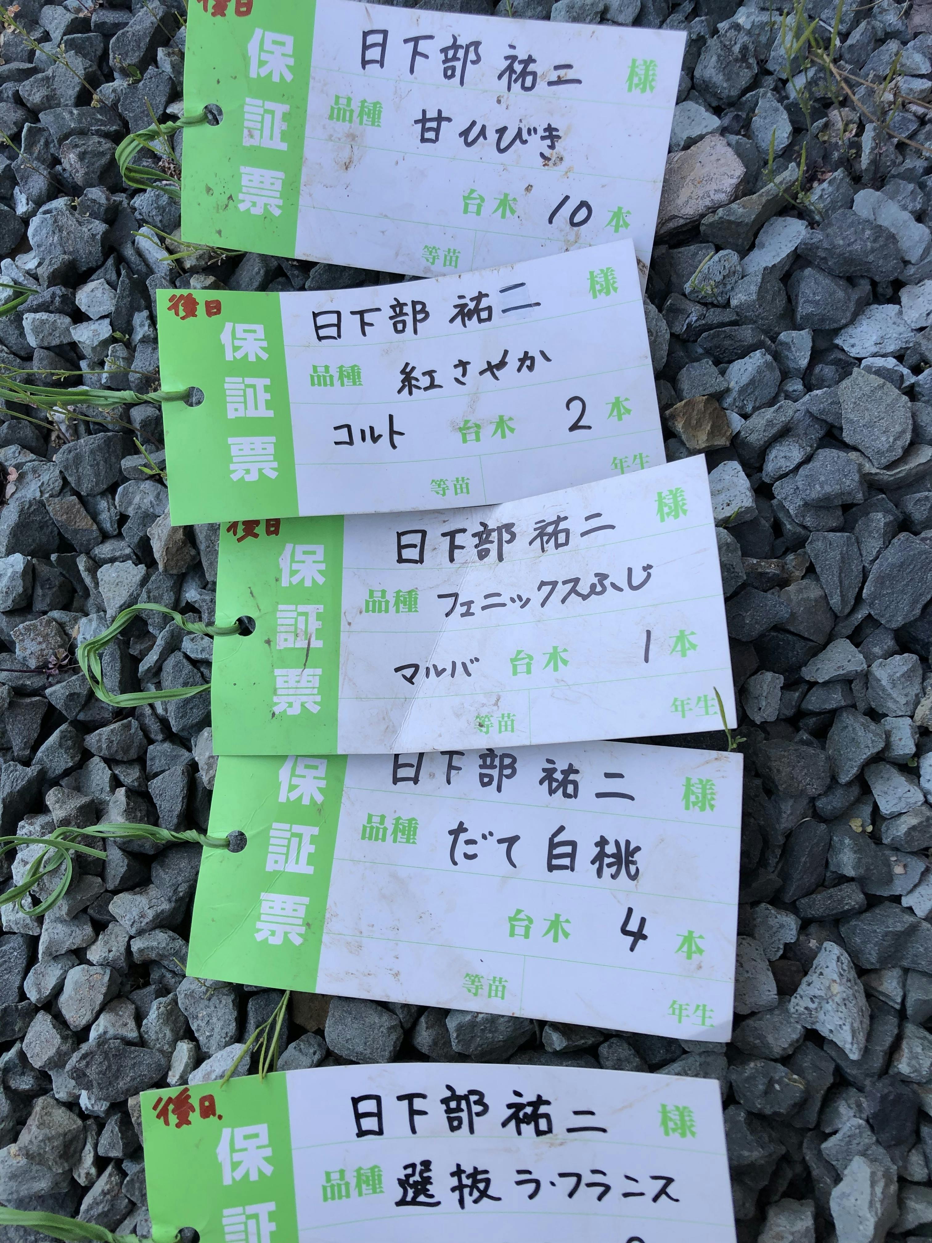 さて、今回の活動報告は、和梨(甘ひびき)とその他の苗木植樹です。木曜日から天気が悪く、今朝も雨の中、苗木屋さんに行きました。ですが、天気予報通り、午後になってようやく晴れたので、植樹作業にかかります!