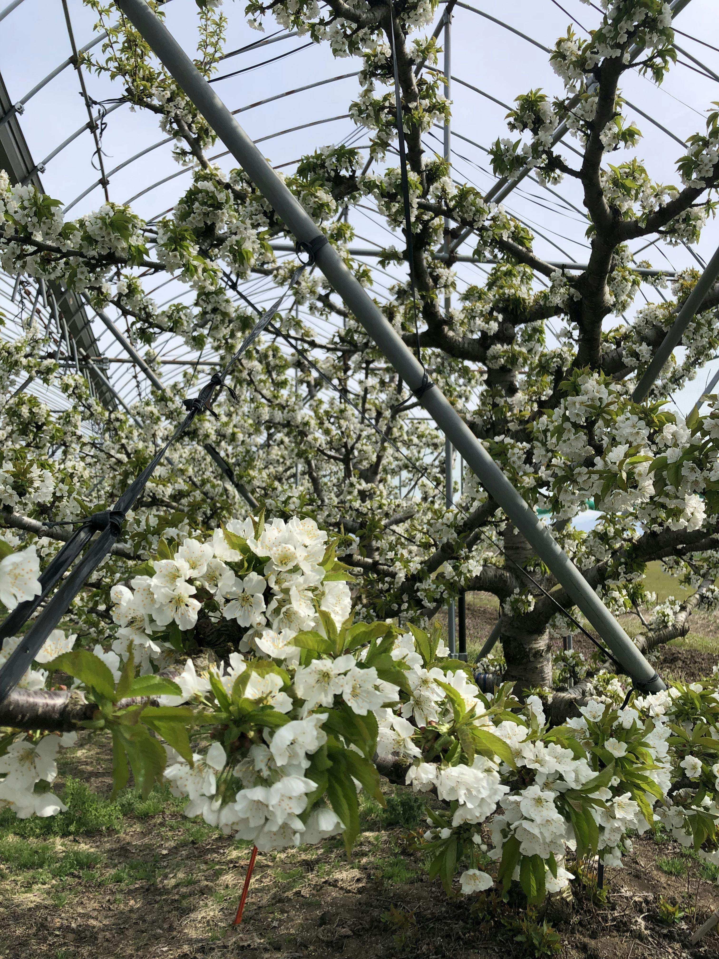 上には画像。「やまがた紅王」です。まだ、樹が小さく花が少ないので、販売は来年のようです。残念!