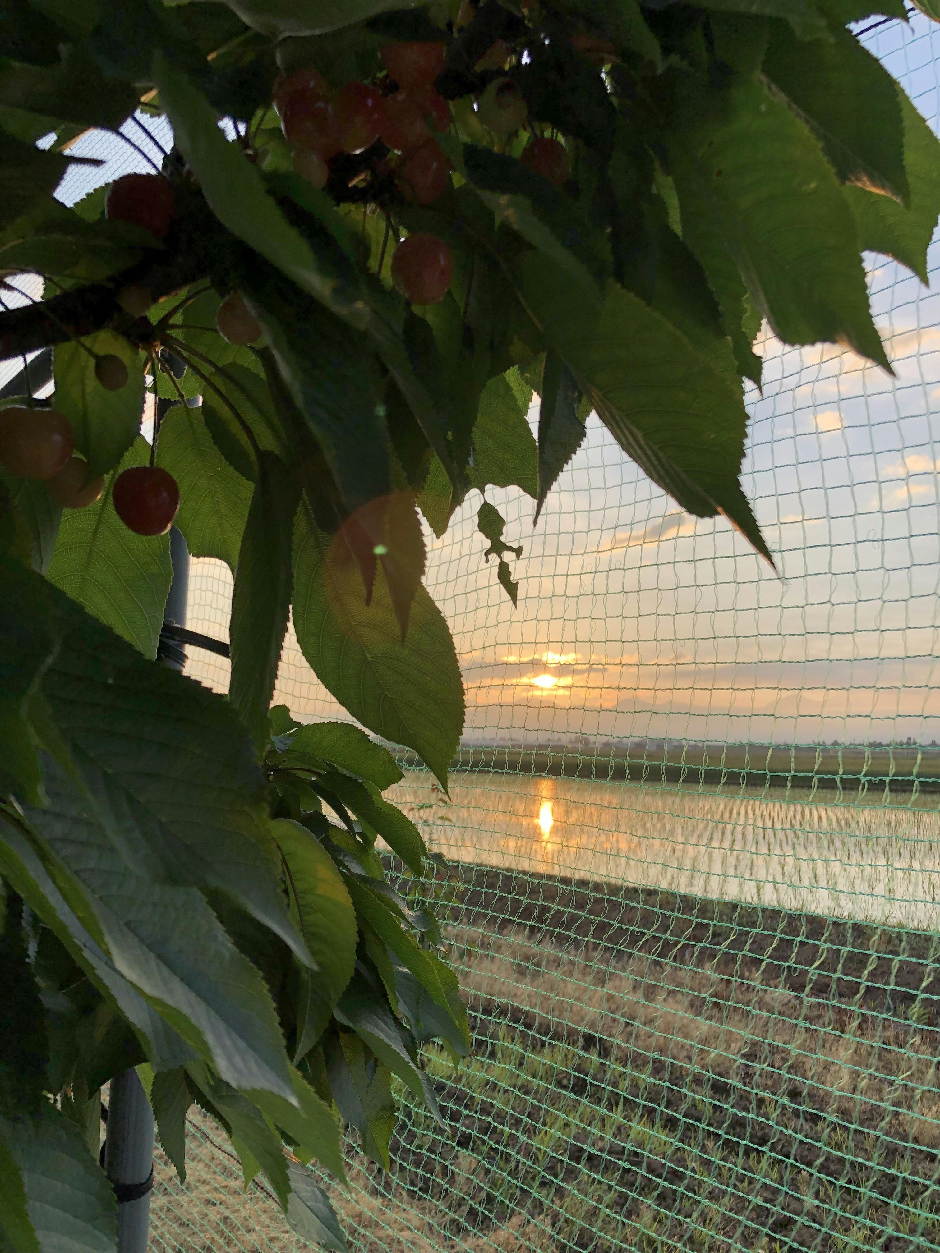樹勢の強いところは、紅く色づいてますね〜(^。^) 今年も美味しいサクランボが収穫できること、確定です!!