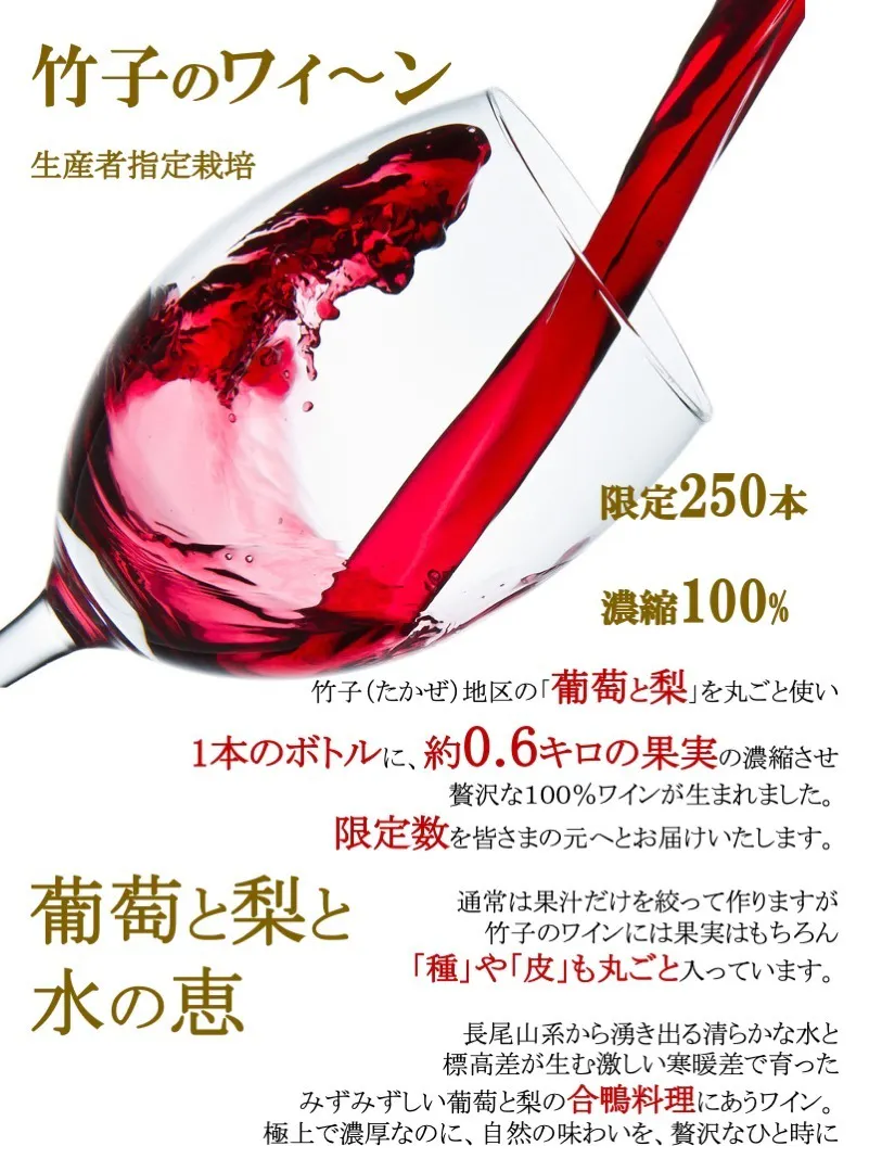 クラウドファンディング先行発売のこの機会に、ぜひ竹子ワィーン とのマリアージュをお楽しみください。