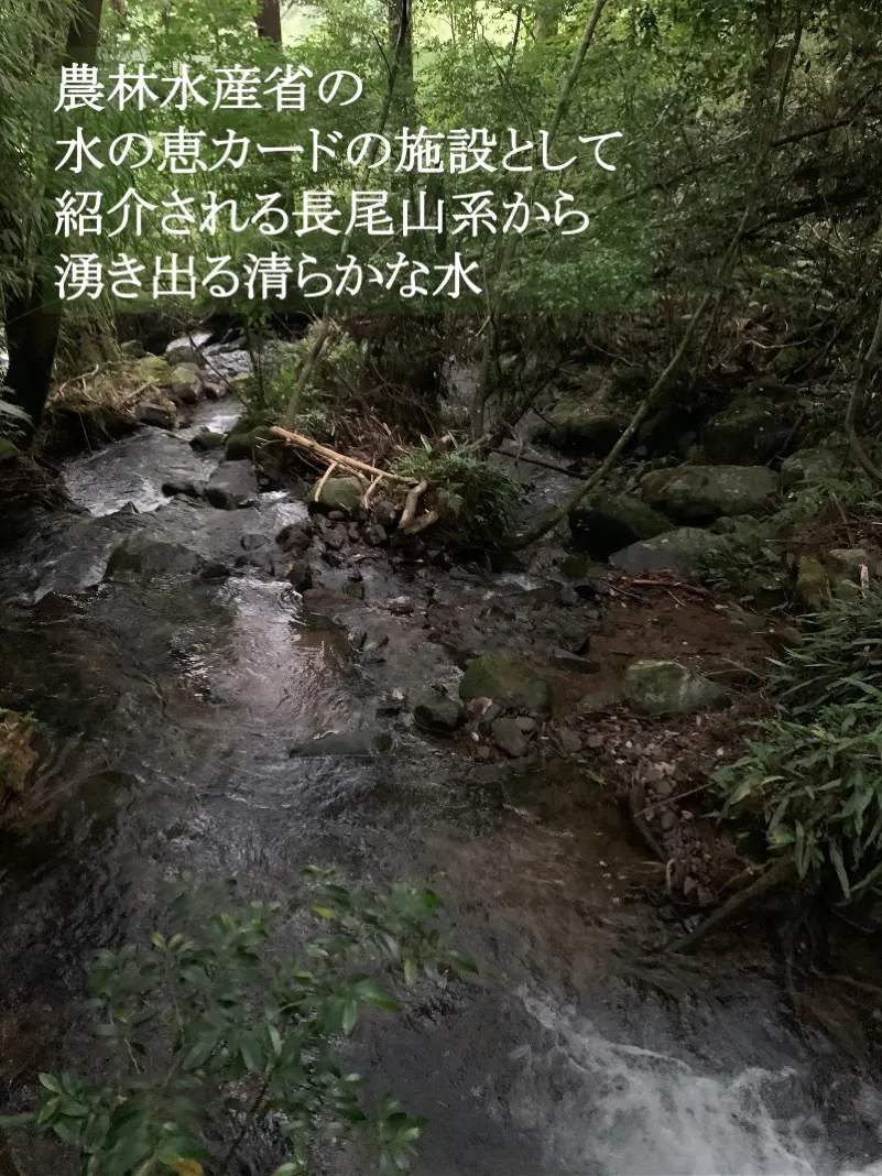 日本国内でも屈指と言われる水質は、標高680メートルの長尾山を中心とした長尾山系北端の分水嶺の源泉を使用しており、現在も飲料水、農業用水に利用されています。