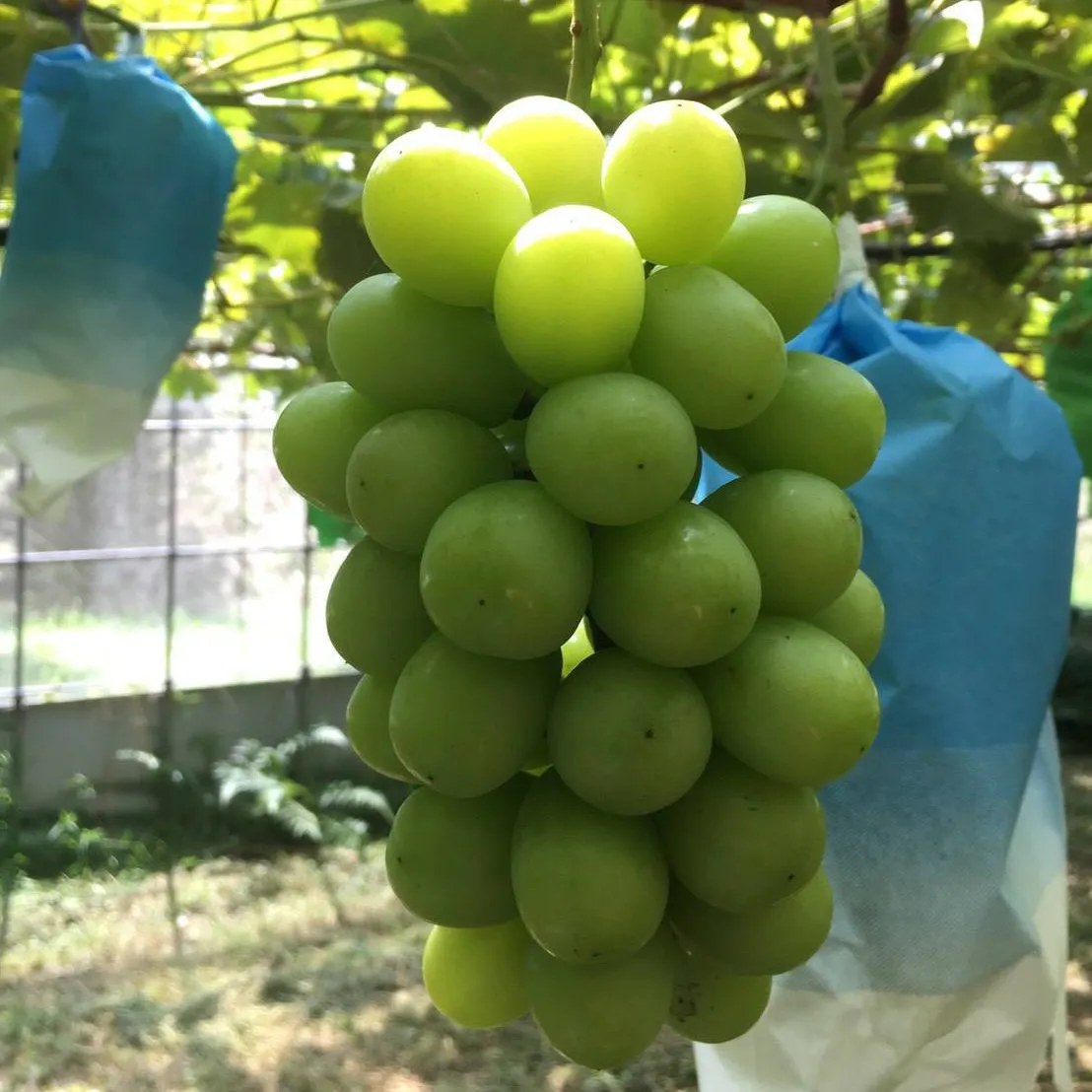 ぶどう シャインマスカット(緑)、アーリースチューベン(黒)、安芸クイーン(赤)