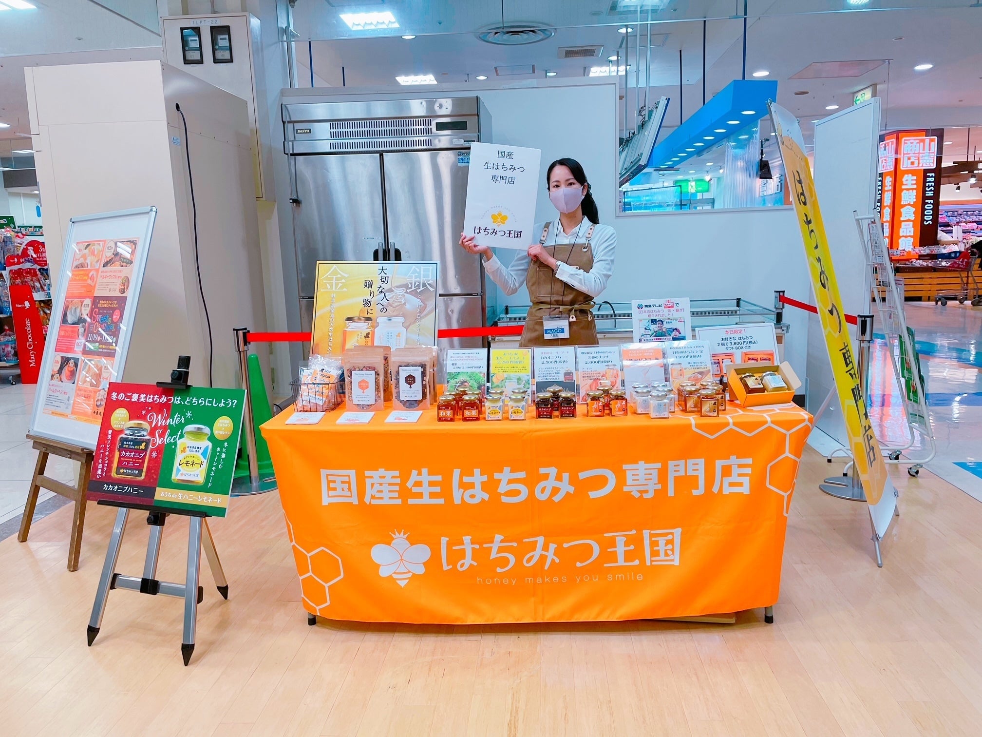 お陰様で、その後、積極的なPR活動を行い、はちみつ工房スタートから約10ヶ月間で岐阜市の「岐阜グランドホテル」などの老舗ホテルや、地元岐阜県山県市の「山県ばすけっと」、岐阜県郡上市の「道の駅明宝」、岐阜県本巣市の「モレラ岐阜」など10カ所ではちみつ商品の販売ができるようになりました。またショッピングモールなどで15回以上催事を行い、少しづつではありますがPR活動を行っています。また、岐阜県山県市のふるさと納税の返礼品にも選定していただきました。