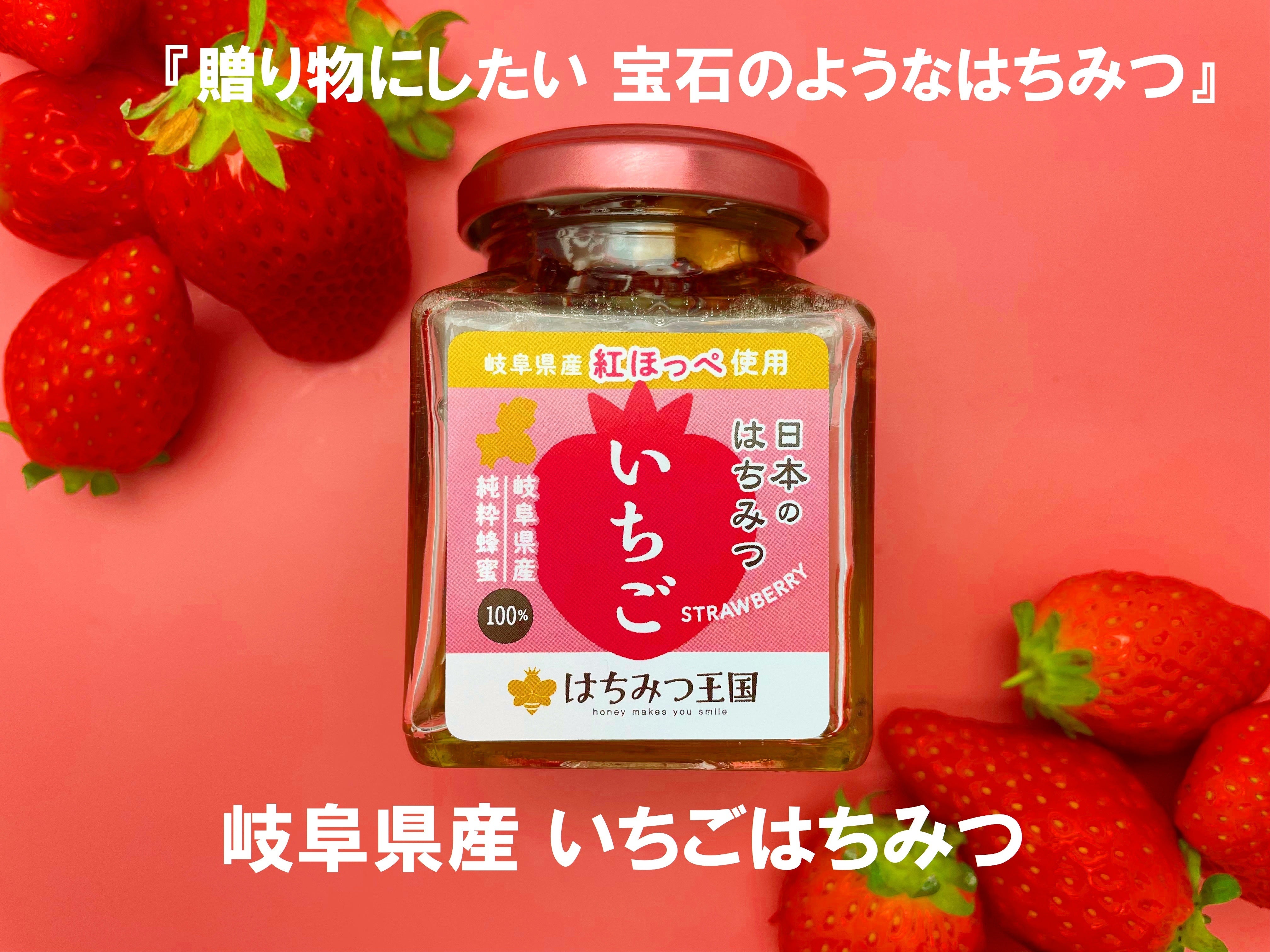はちみつ王国の「苺はちみつ」は、岐阜県内で採れた農作物(畜産物)のみで作った天然はちみつです。