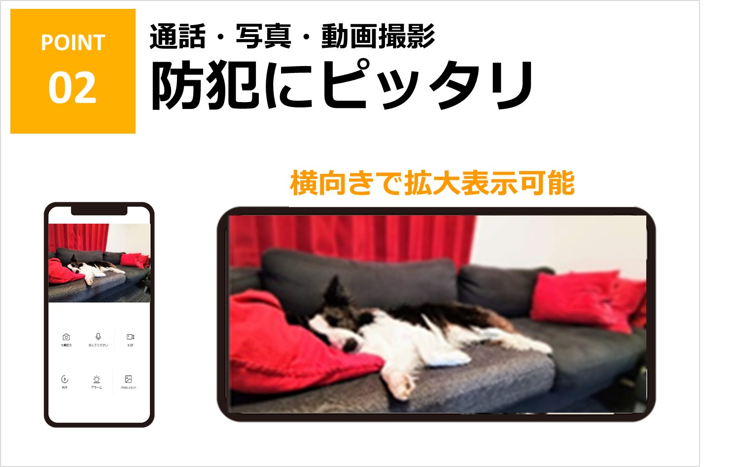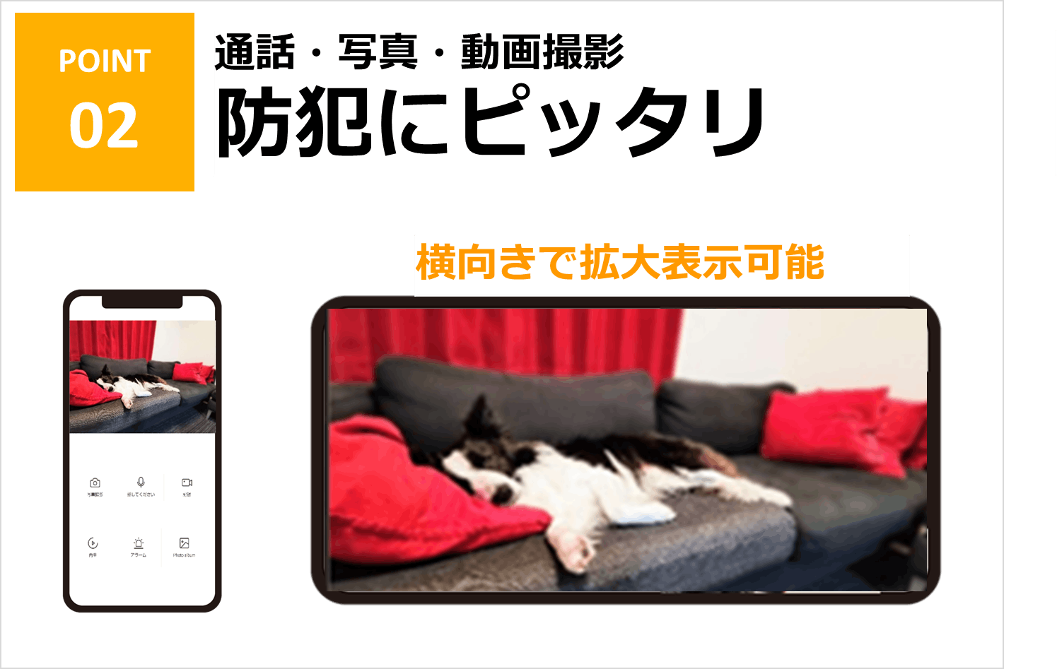会話や写真撮影が可能なので、防犯としての役割はもちろん、コミュニケーションを楽しむツールとしてもご利用できます。