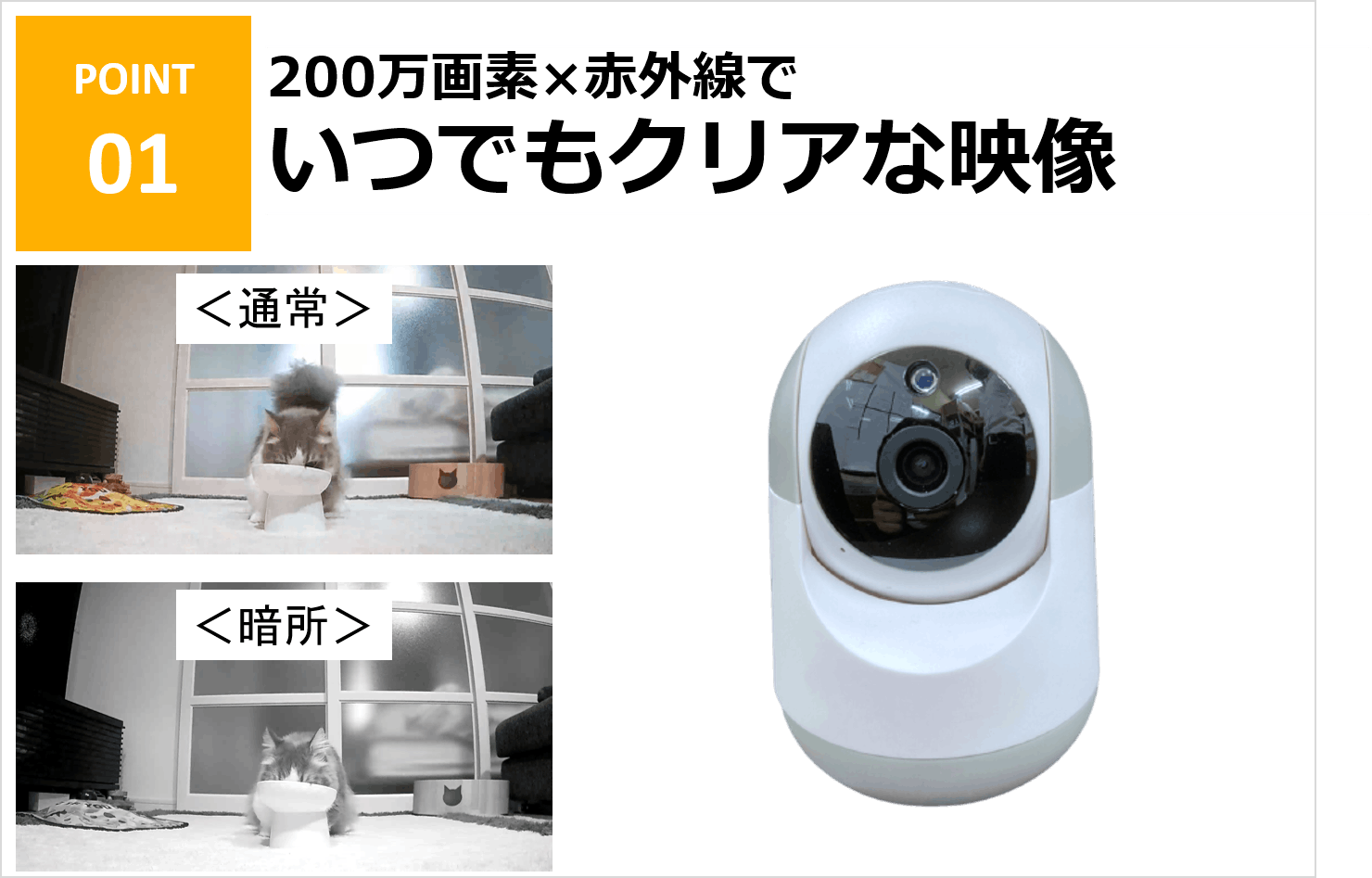明所は200万画素の高画質で、お部屋の様子を鮮明に写し出すことができます。