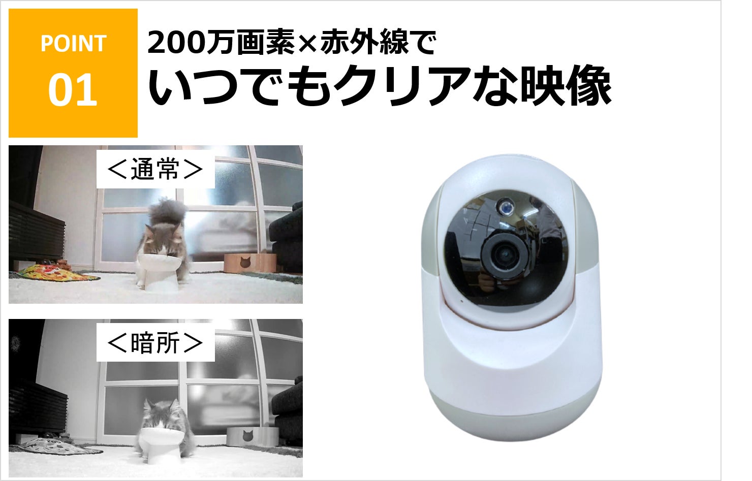 明所は200万画素の高画質で、お部屋の様子を鮮明に写し出すことができます。