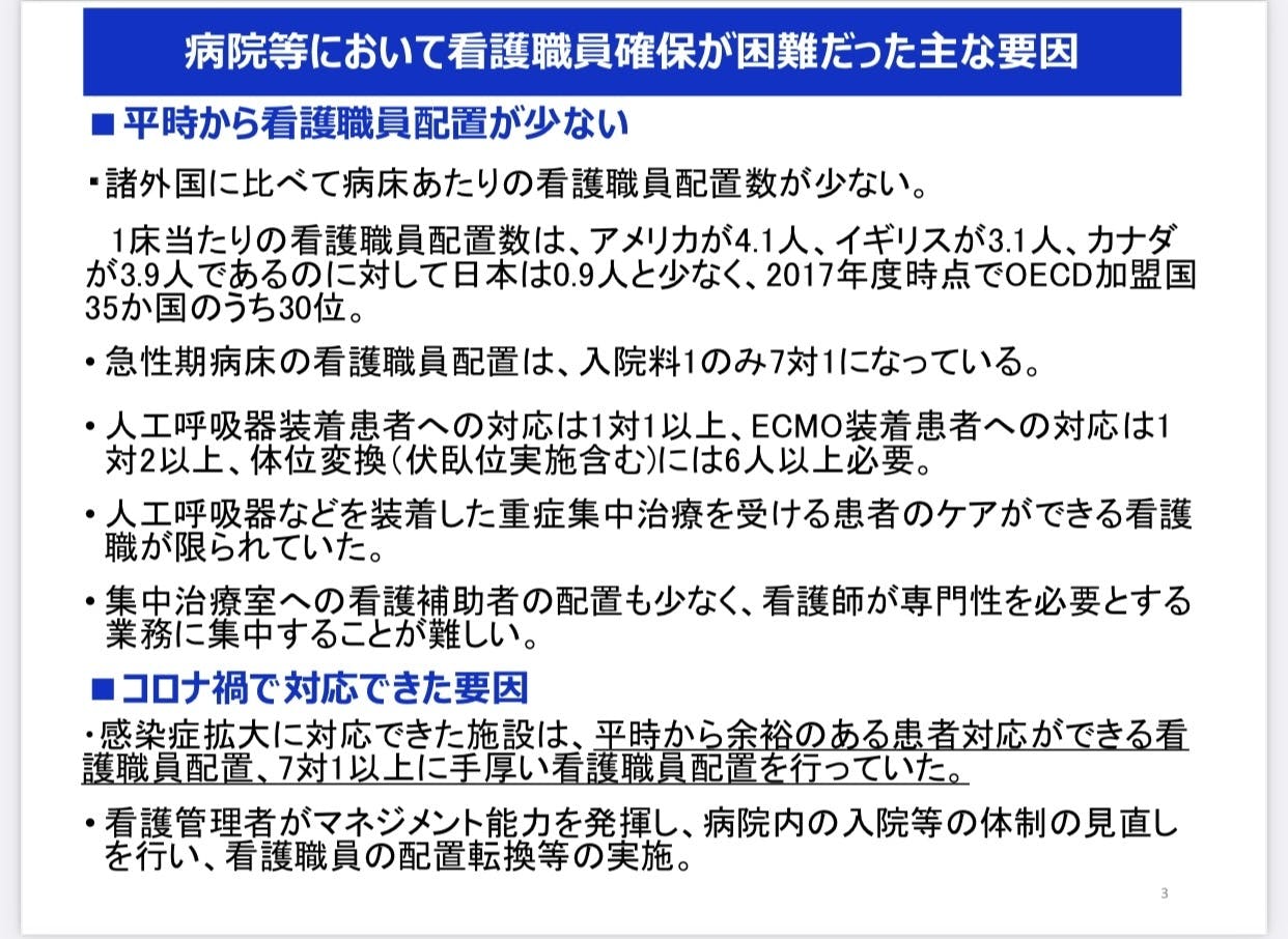 新型コロナウィルスの感染拡大につき、日本の看護師不足による医療機関の逼迫状況が問題となってきました。