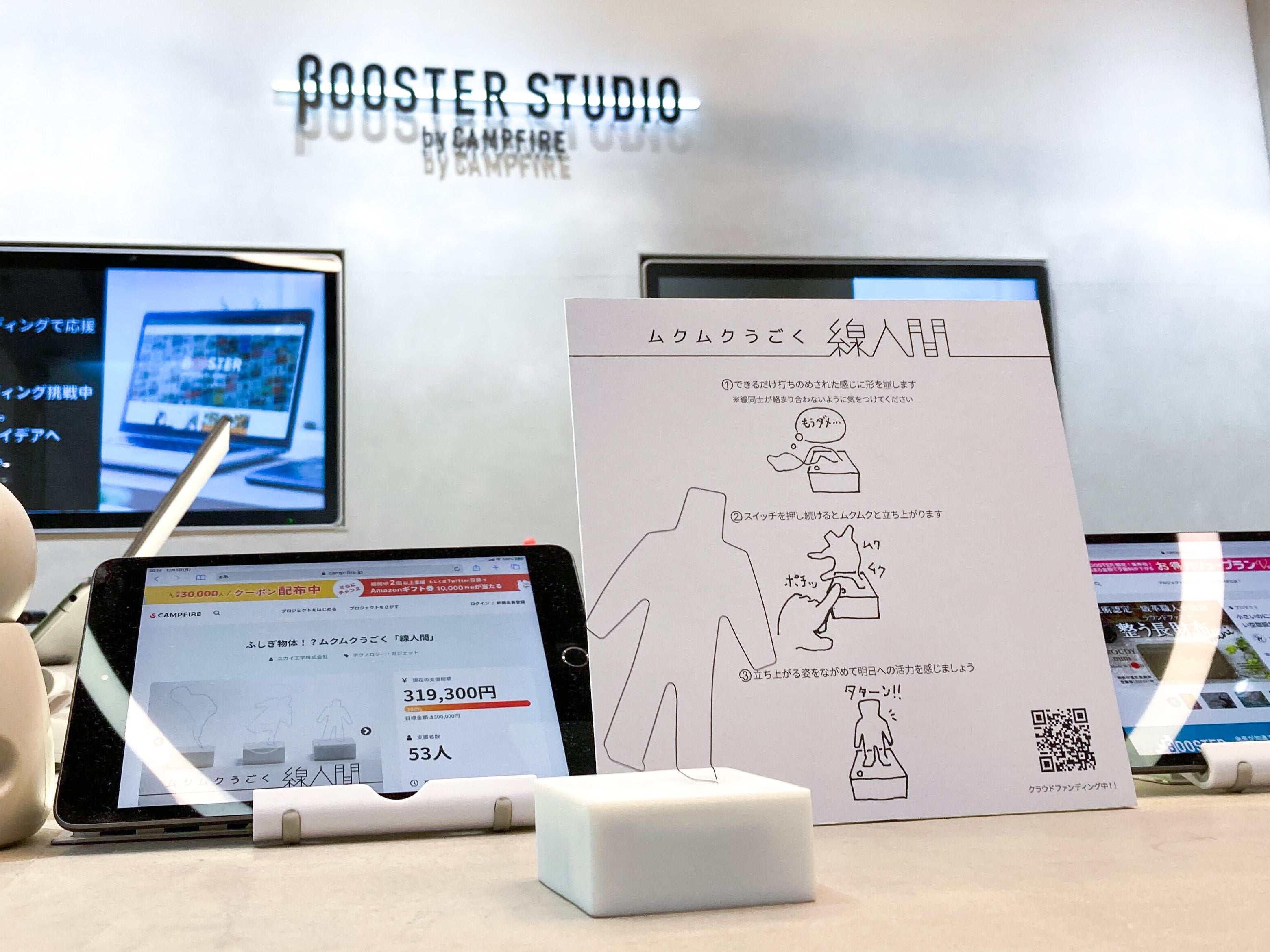 渋谷PARCO 1Fにあるショールーム「BOOSTER STUDIO by CAMPFIRE」にムクムク動く「線人間」のプロトタイプを展示中です。