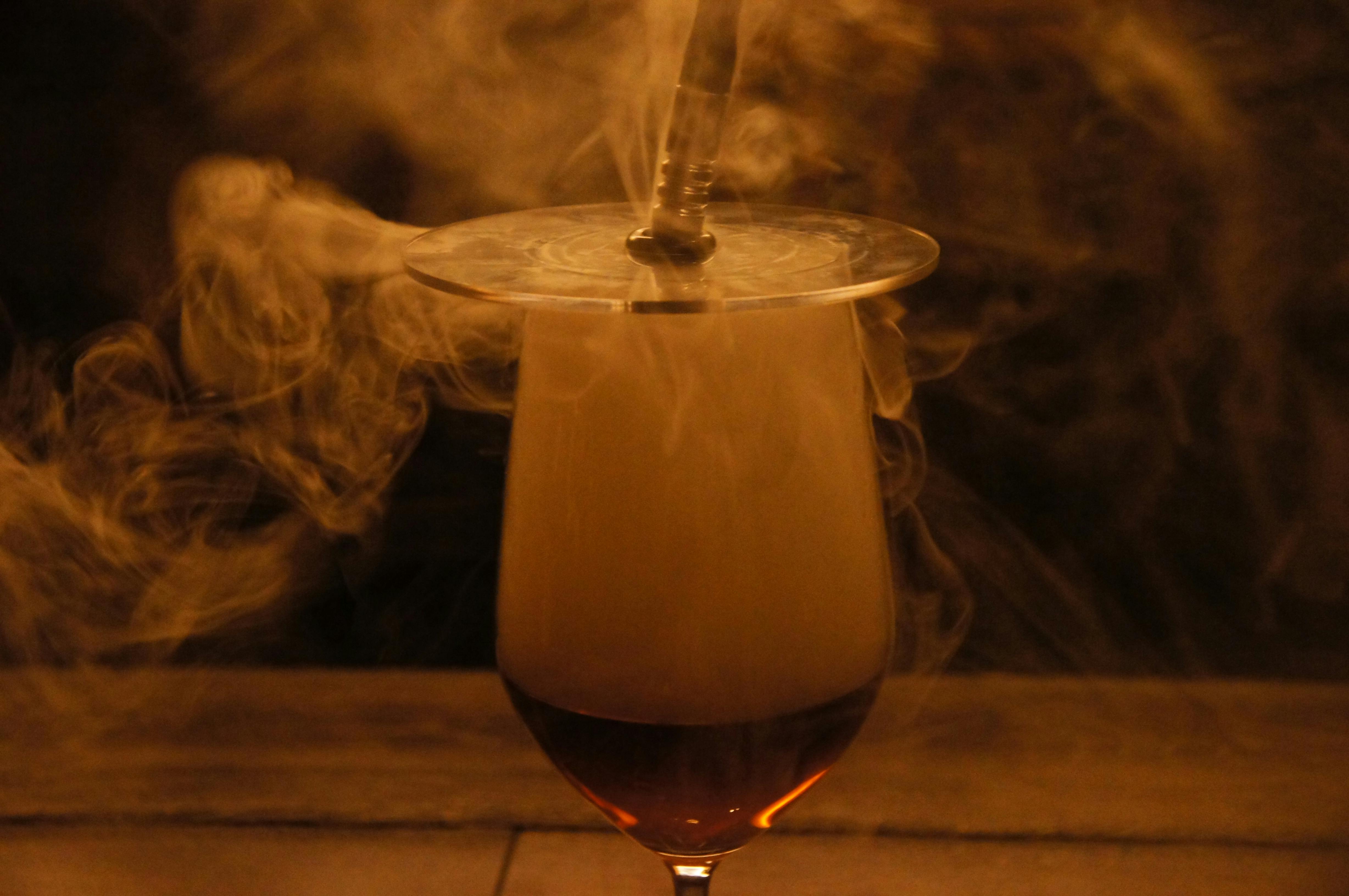 【HOMIA SmorkGun】は熱を加えないので、アルコールを飛ばすことなく、いつものお酒やカクテルの味がワンランクアップします。