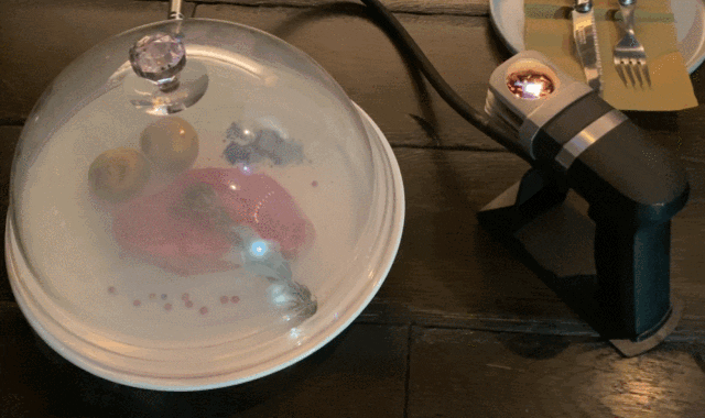 【HOMIA SmorkGun】はたった30秒で身近な食材に燻製の風味豊かな味付けをする魔法の調理具。