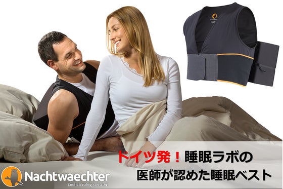 「ナハトヴェヒター」はドイツで開発された、着るだけで”横に寝る癖”をつけて”いびき”を防止する、最新の特許技術と人間工学に基づいたベストです。