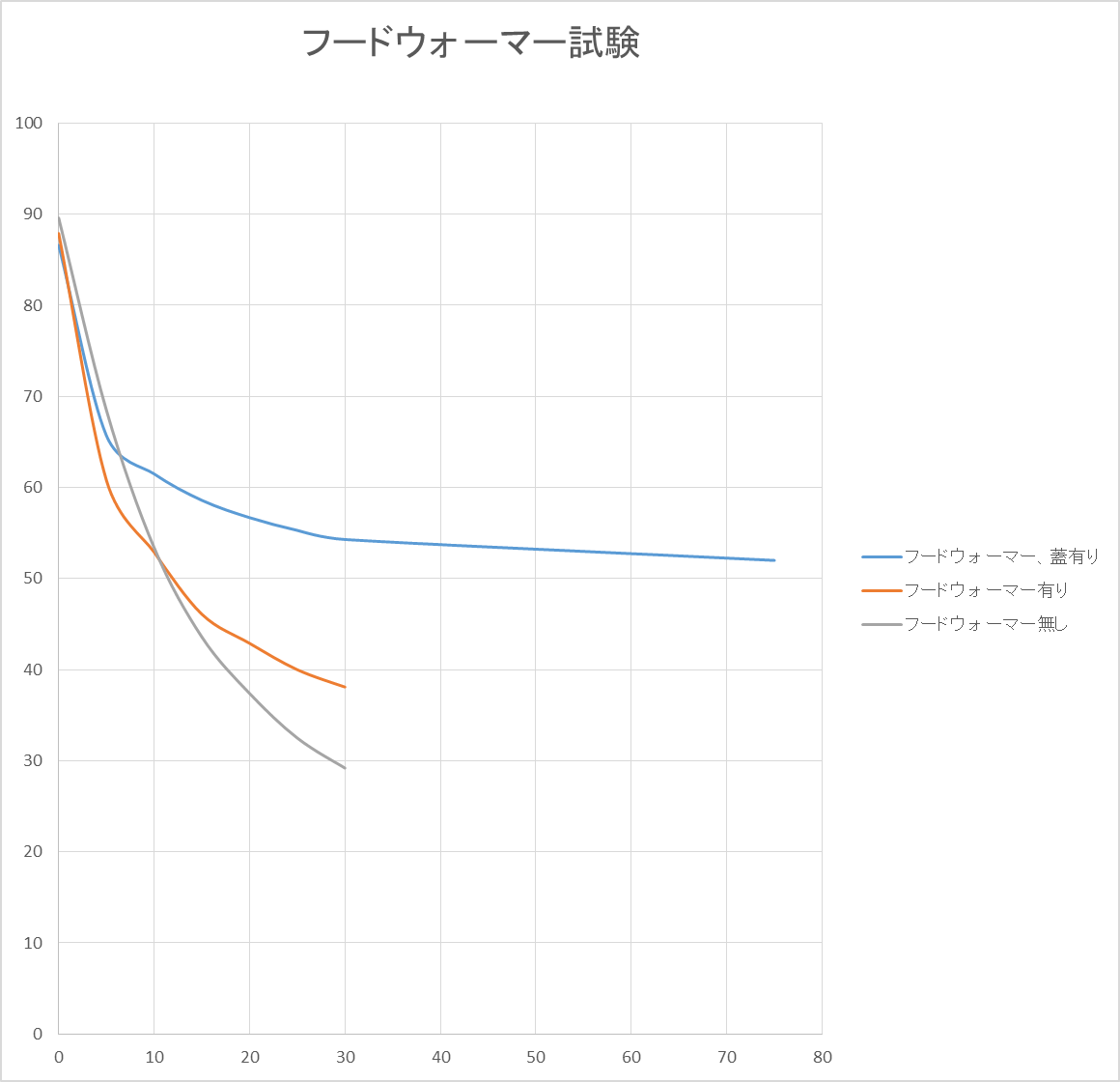 セットの専用ステンレス製フタを併用すれば、1時間経過しても容器の底は50℃以上を保っています。
