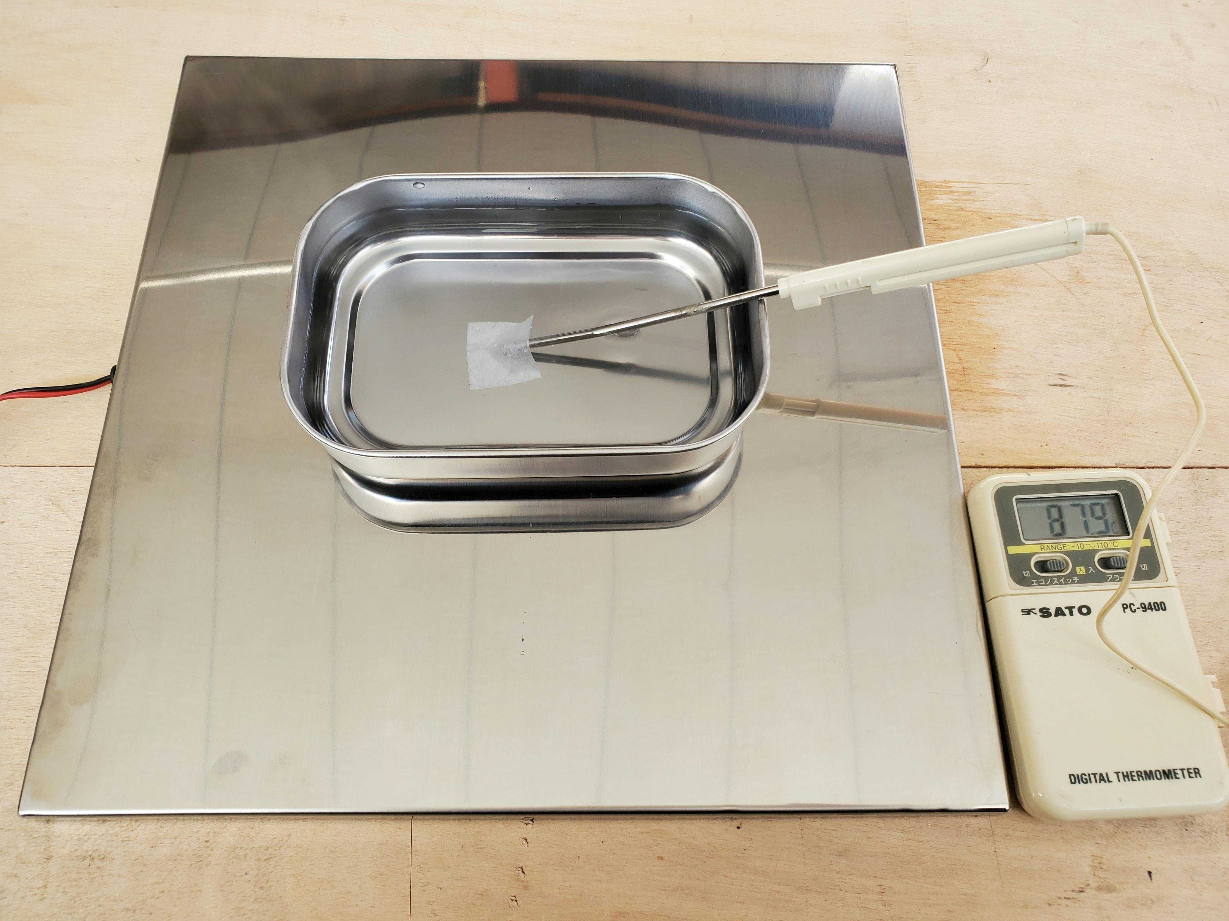 ①完成したフードウォ ーマー(カーボンヒーター) THFW-MA(ステンレス+銅メッキ品)