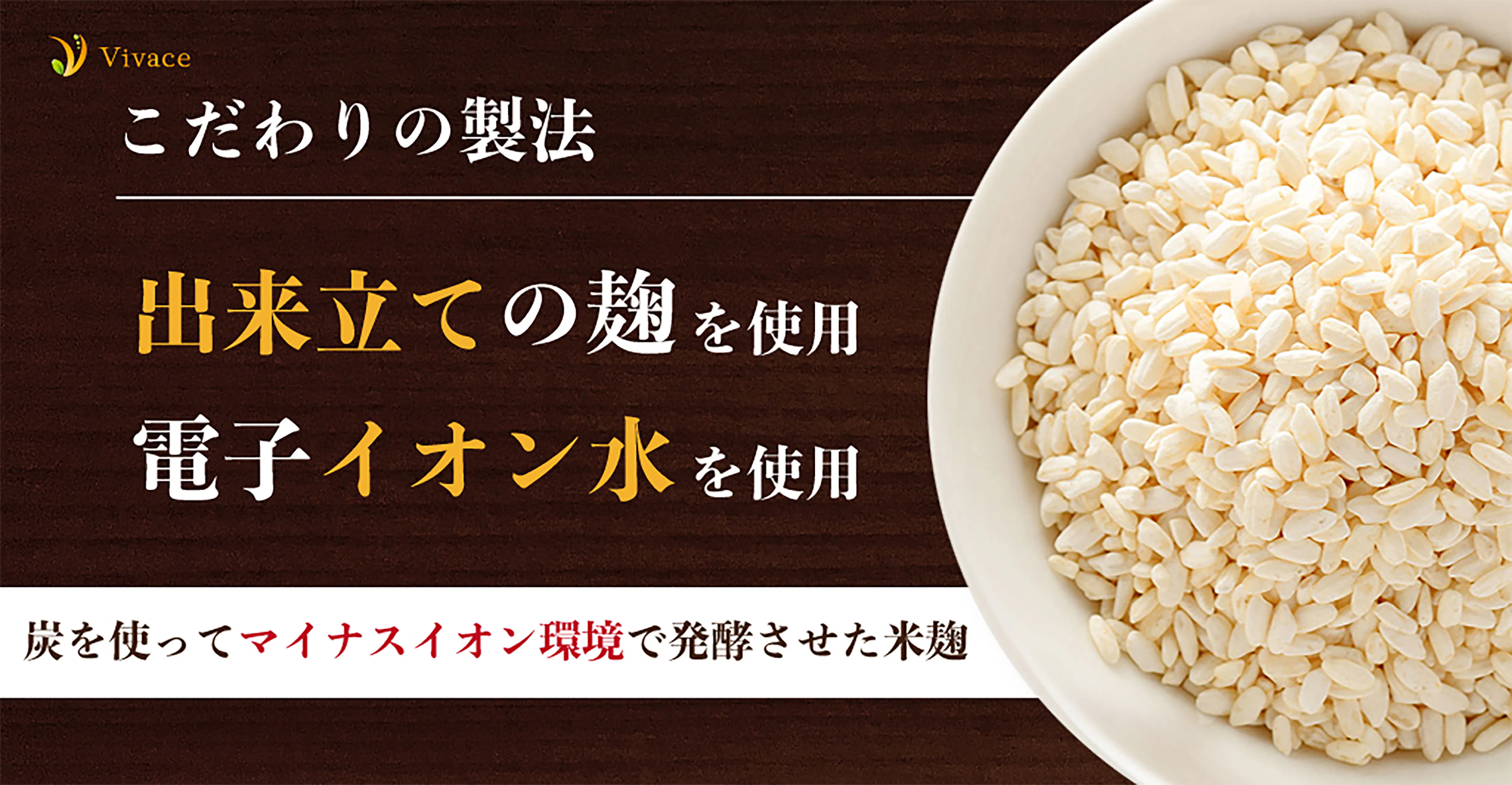美と健康のためには体を鍛えるだけではなく、体の中からキレイにする事も重要です。 美しく健康なカラダ作りは腸から。そんな体の中からのキレイを実現するために、vivaceでは「美の甘酒」を販売しています。