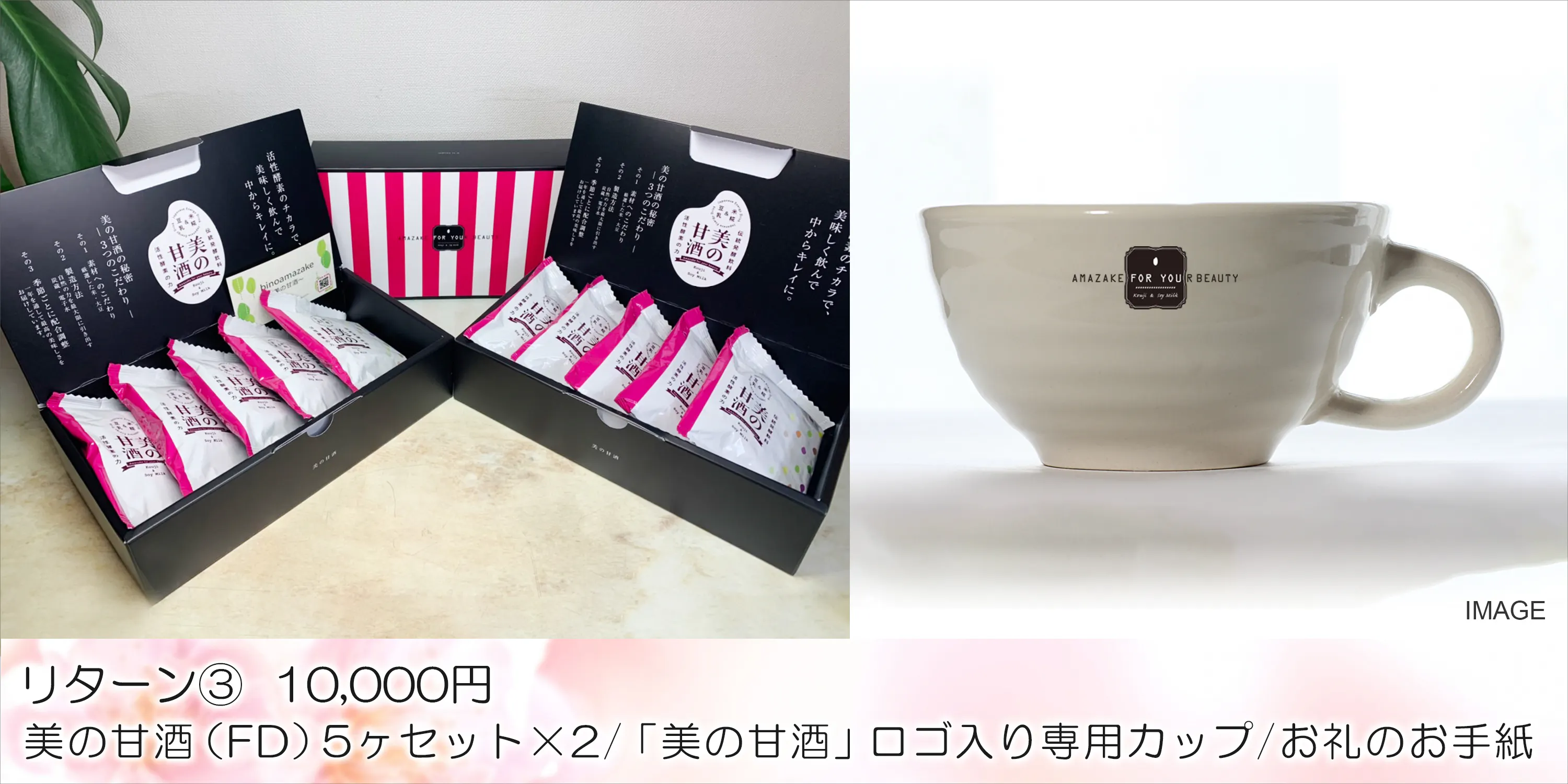 リターン③(10,000円):美の甘酒( FD )5ヶセット×2/「美の甘酒」ロゴ入り専用カップ/お礼の手紙