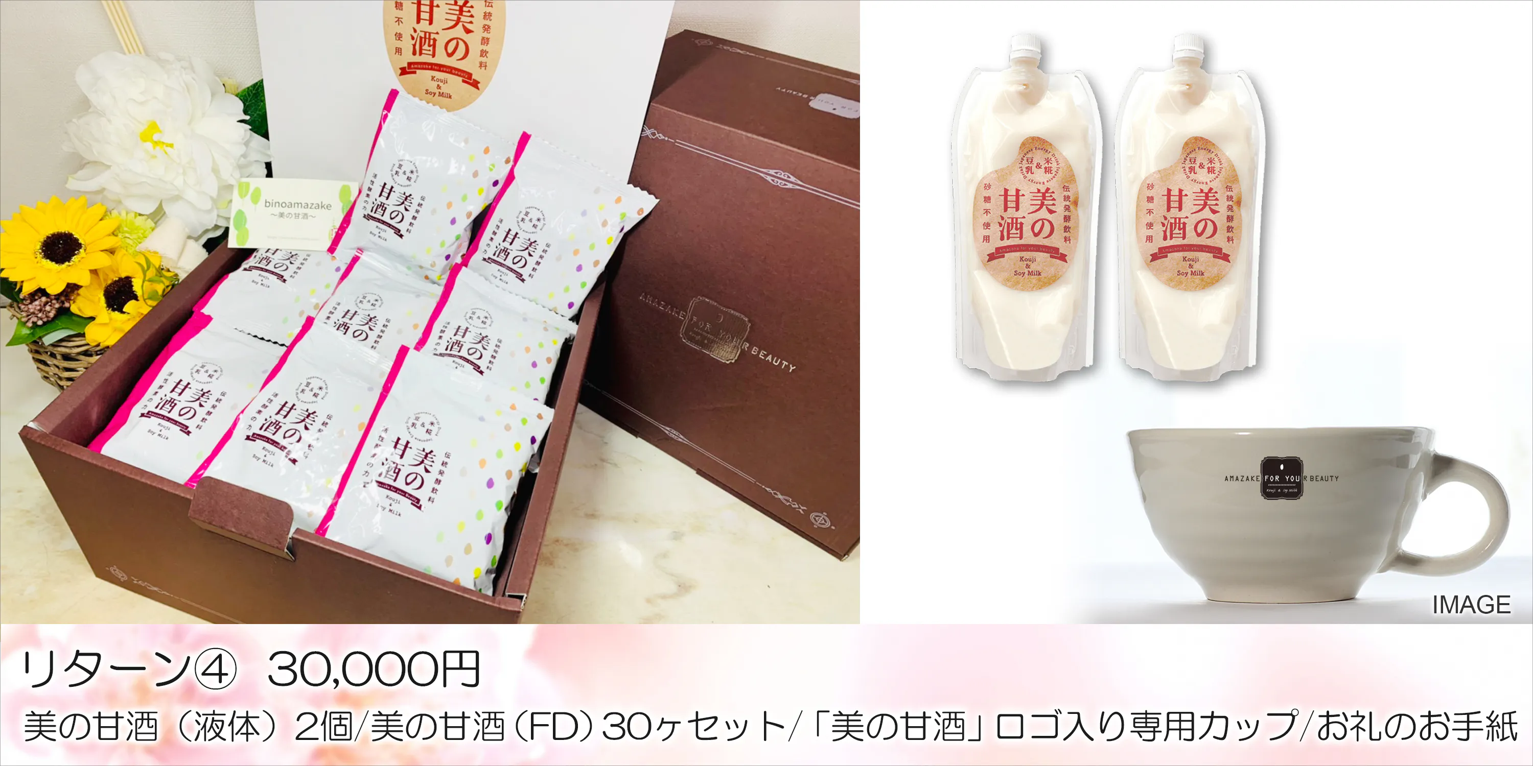 リターン④(30,000円):美の甘酒(液体)2個/美の甘酒( FD )30ヶセット/「美の甘酒」ロゴ入り専用カップ/お礼の手紙