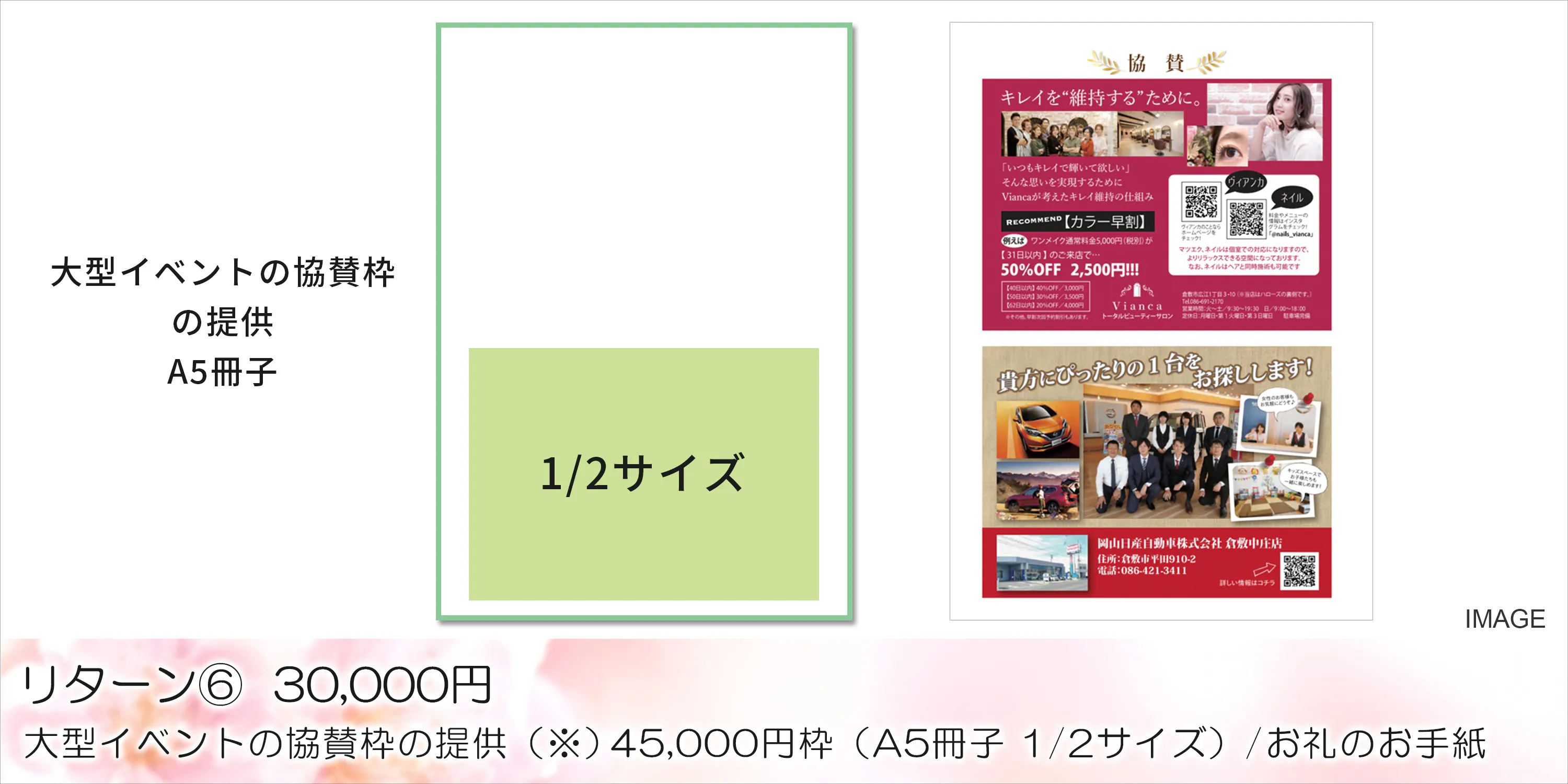 リターン⑥(30,000円):大型イベントの協賛枠の提供(※)本来は45,000円枠