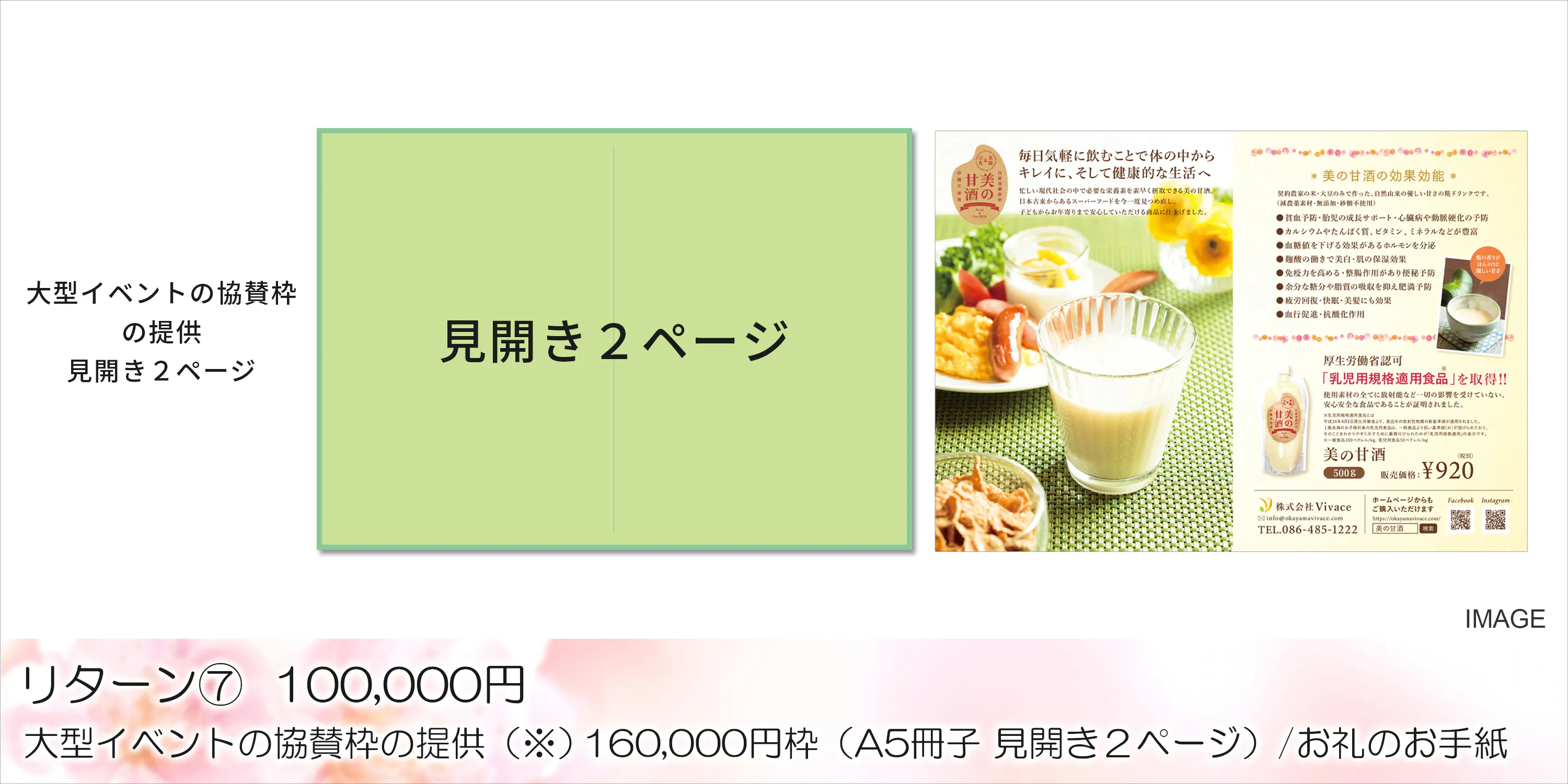 リターン⑦(100,000円):大型イベントの協賛枠の提供(※)本来は160,000円枠