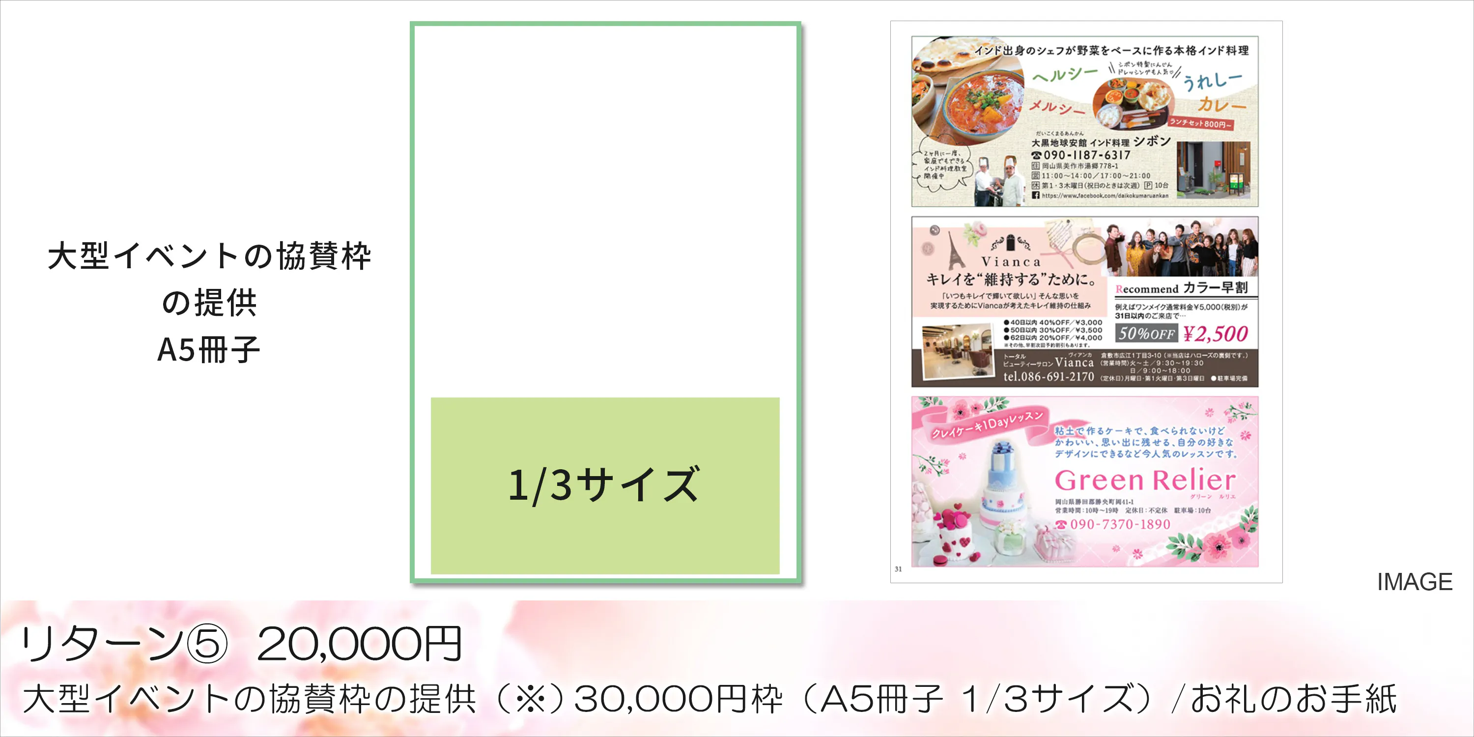 リターン⑤(20,000円):大型イベントの協賛枠の提供(※)本来は30,000円枠