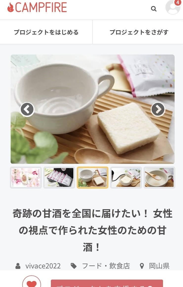 2022/04/13 19:29皆様、ありがとうございます。早かった・・・。あと2日で逵は燃え尽きますw様々な想いがこみ上げてきますが、「美の甘酒」への想いは1人でも多くの方に伝わったのか。1人でも多くの方へお届け出来たのか、悔いの無いよう最後まで頑張りますので見守って頂けますと嬉しいです。数年前に女性が集まって作った究極の甘酒は、酵素が生きたままのフリーズドライとなりました。1月に沢山の方にアンケートを頂きましたが、やはり価格がネック。今後は課題として対策を立てていきたいと思っています。今回のご支援はその一部に充てたいと思っています。皆様の想いを「美の甘酒」が更に身近なものに出来るよう頑張ります。あと2日!引き続きどうぞ宜しくお願い致します! プロジェクトオーナー 逵由美 もっと見る