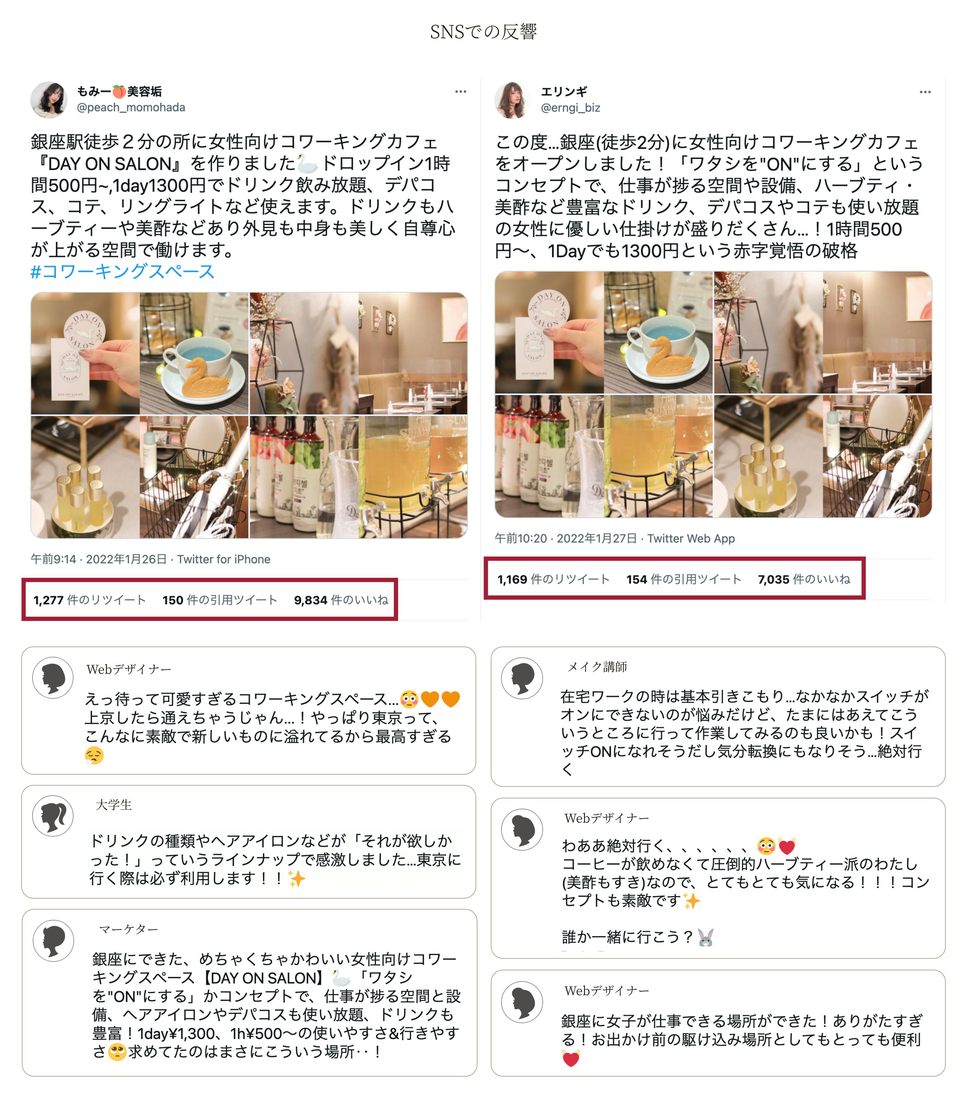TwitterやInstagramでも多くの反響をいただき、毎日たくさんの女性にご利用いただいています!
