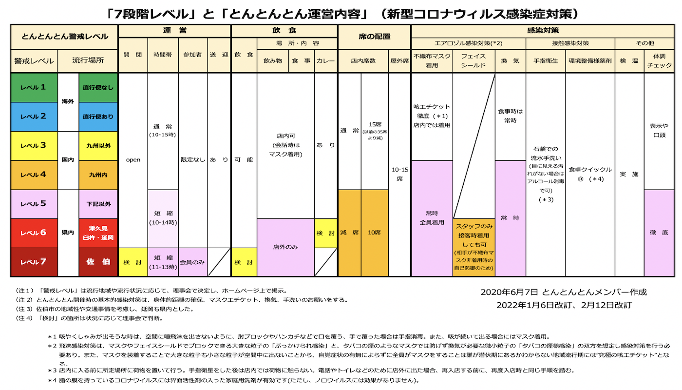 私自身のこれまでの感染対策の知識と経験を駆使し、地域の流行状況に応じた感染対策や活動内容を段階的に取り決めた「新型コロナフェイズ」を作成し、仲間たちと共有し、活動してきました。