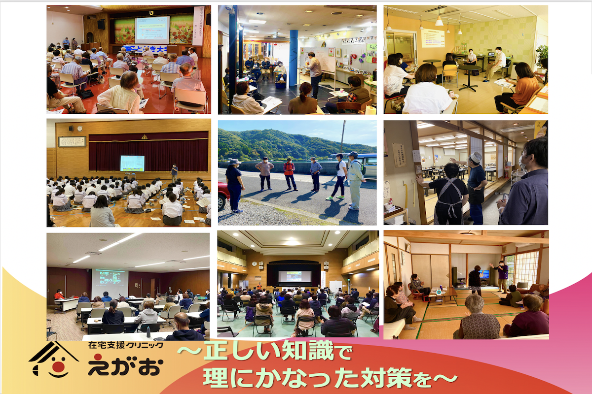 コロナが発生してからの2年間、佐伯市、津久見市において、行政、観光協会、老人クラブ、中学校などで20を超える講演を行い、昨今では、津久見市観光協会主催「モイカフェスタ」では、参加全店舗を訪問して感染対策の指導を行ったり、佐伯市観光協会主催の講演会の内容は、佐伯市ケーブルテレビで繰り返し放映され、一般市民への教育啓発に寄与しています。