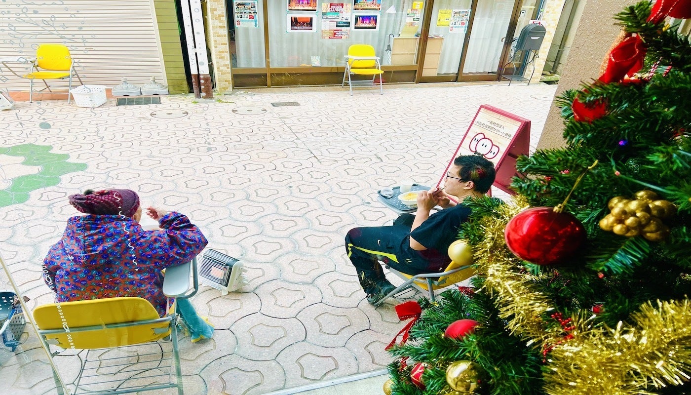 コロナ禍の中、多世代の方々が安全に共に過ごす環境の提供が難しく、店内で過ごす人数の制限を行ったり、また、マスクを外す飲食は、店舗内が手狭なため、店外(商店街)でお願いしています。