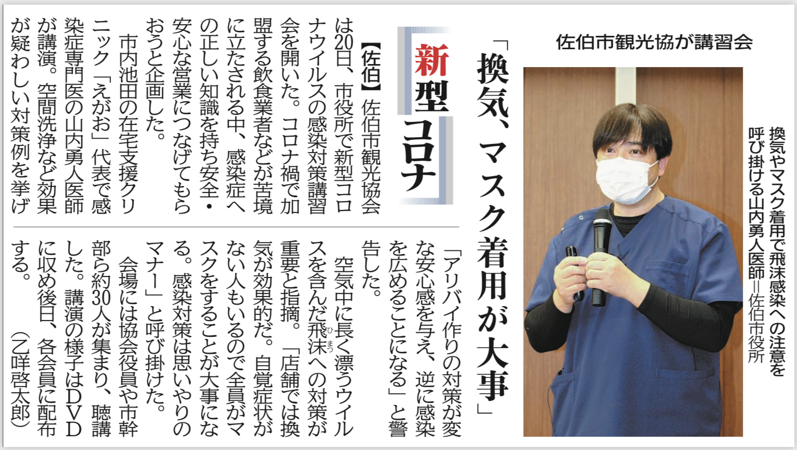 Covid-19においても、主たる感染経路は「空気感染」であることをいち早く指摘し、正しい感染対策の普及に努める。