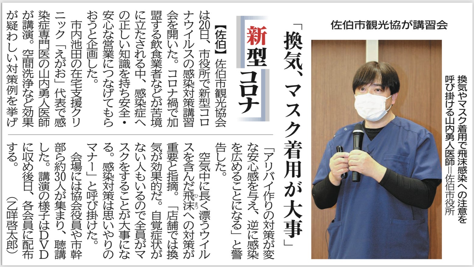 今では当たり前になっている「全員マスク」(いまは、ユニバーサルマスキング)を最初に提案したひとりでもあります。