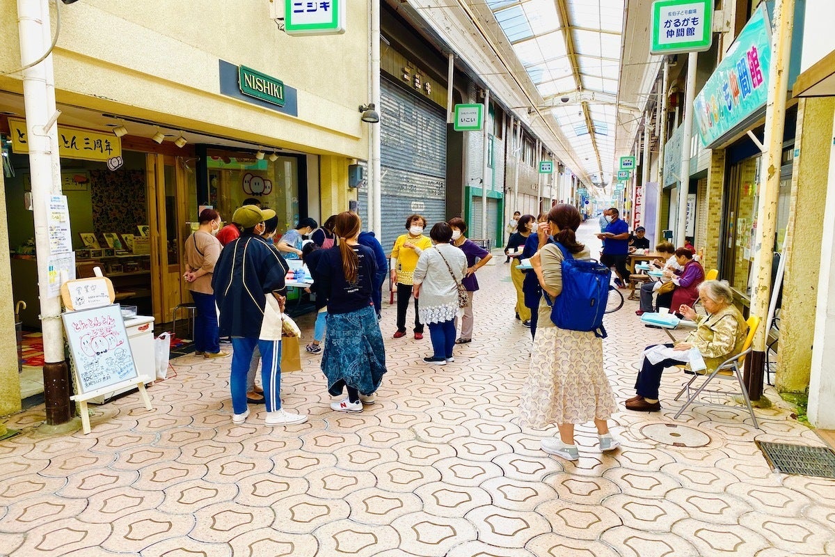 コロナ禍の中、多世代の方々が安全に共に過ごす環境の提供が難しく、店内で過ごす人数の制限を行ったり、また、マスクを外す飲食は、店舗内が手狭なため、店外(商店街)でお願いしています。
