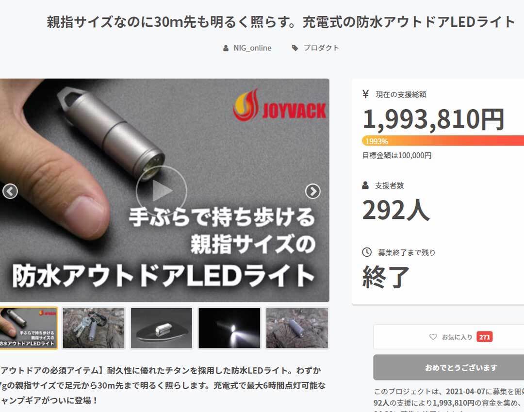 前回CAMPFIREでのクラウドファンディング公開では、1ヶ月で支援額199万円を集めました。