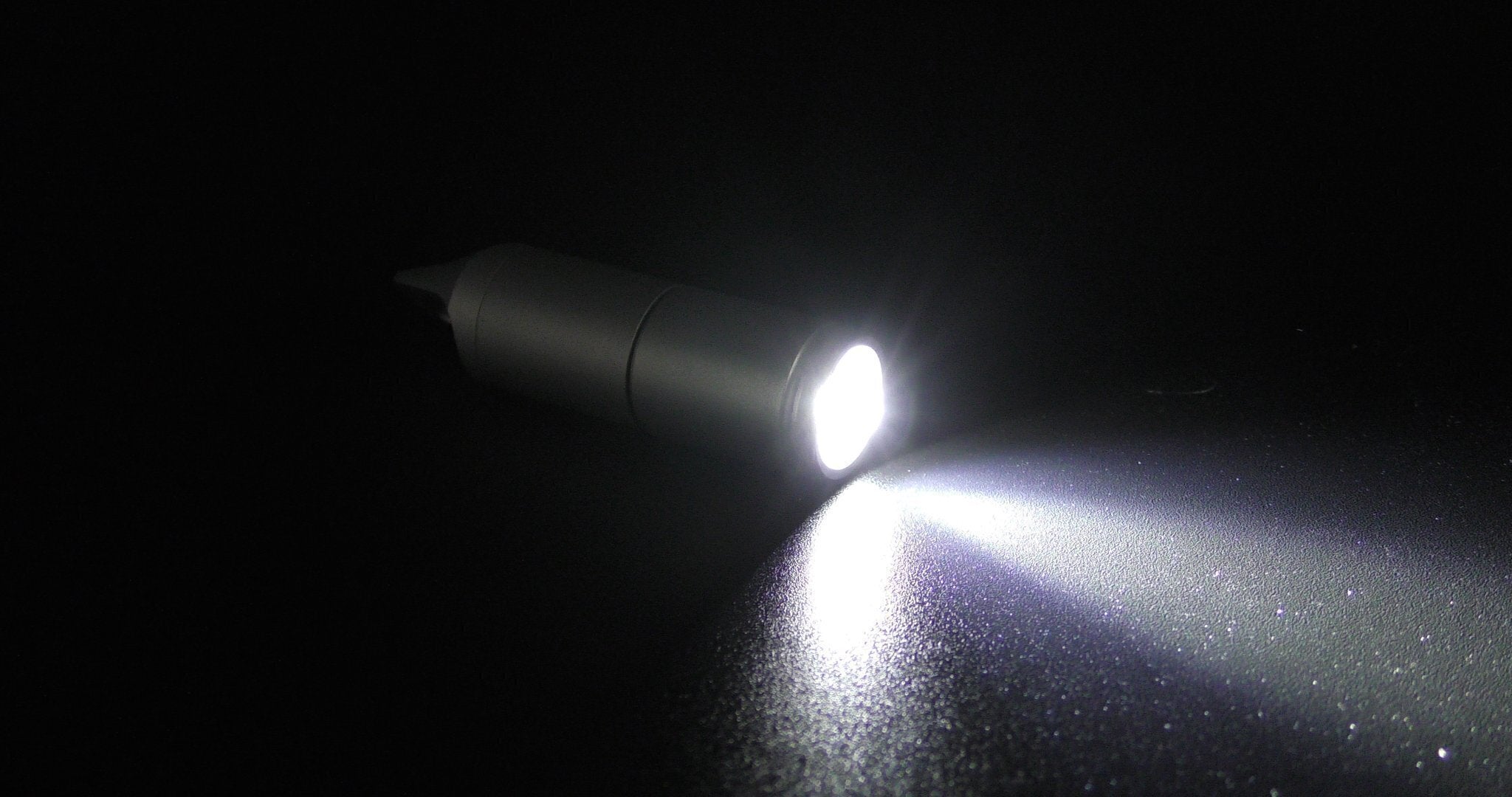 親指サイズでコンパクトなのに、約30m先も照らす明るさです(130ルーメン)。