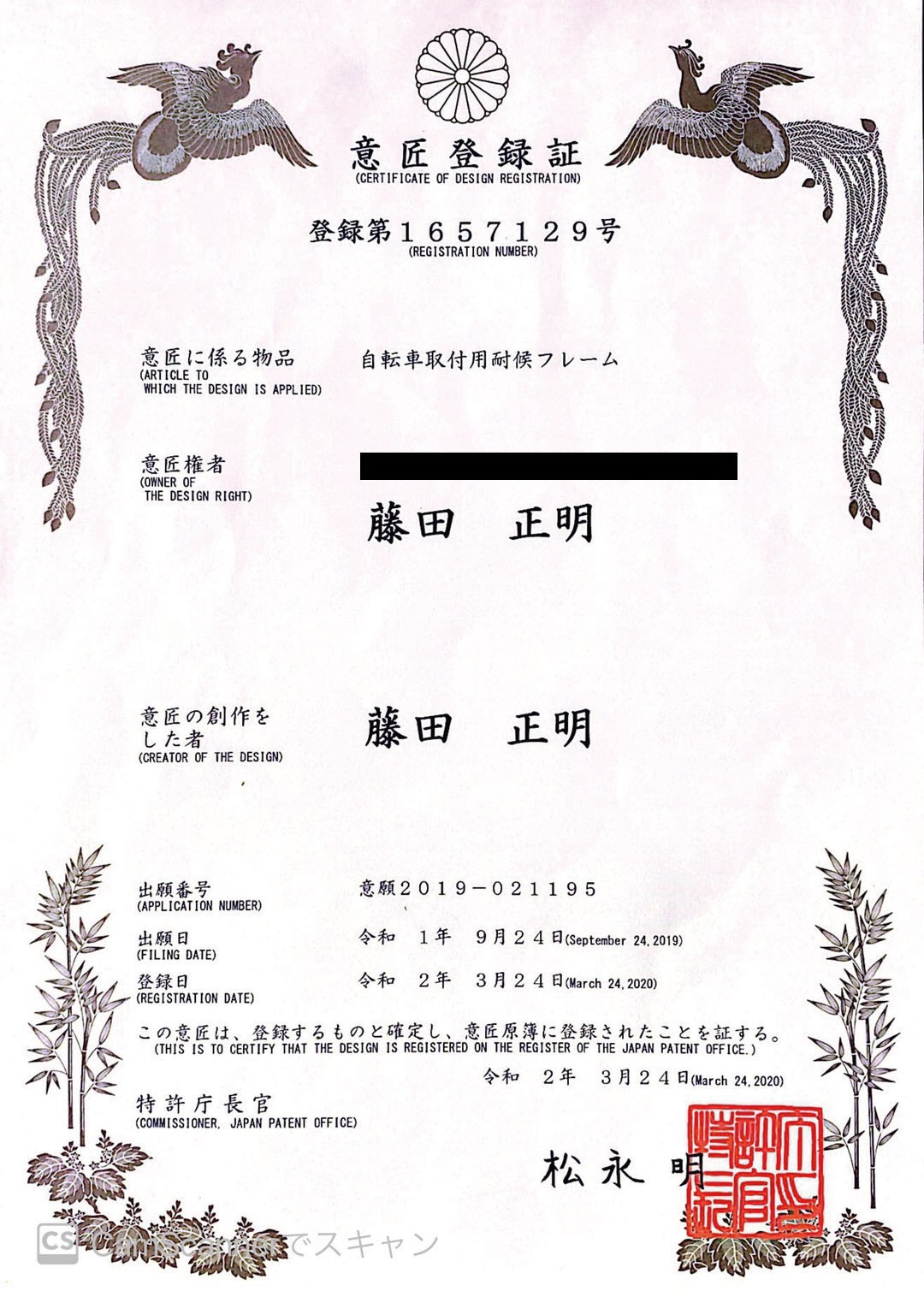そこで大人用レインカバーの開発を思い立ち、研究し、毎日自分が通勤に使って、改良を加え昨年やっと意匠申請にこぎつけました。