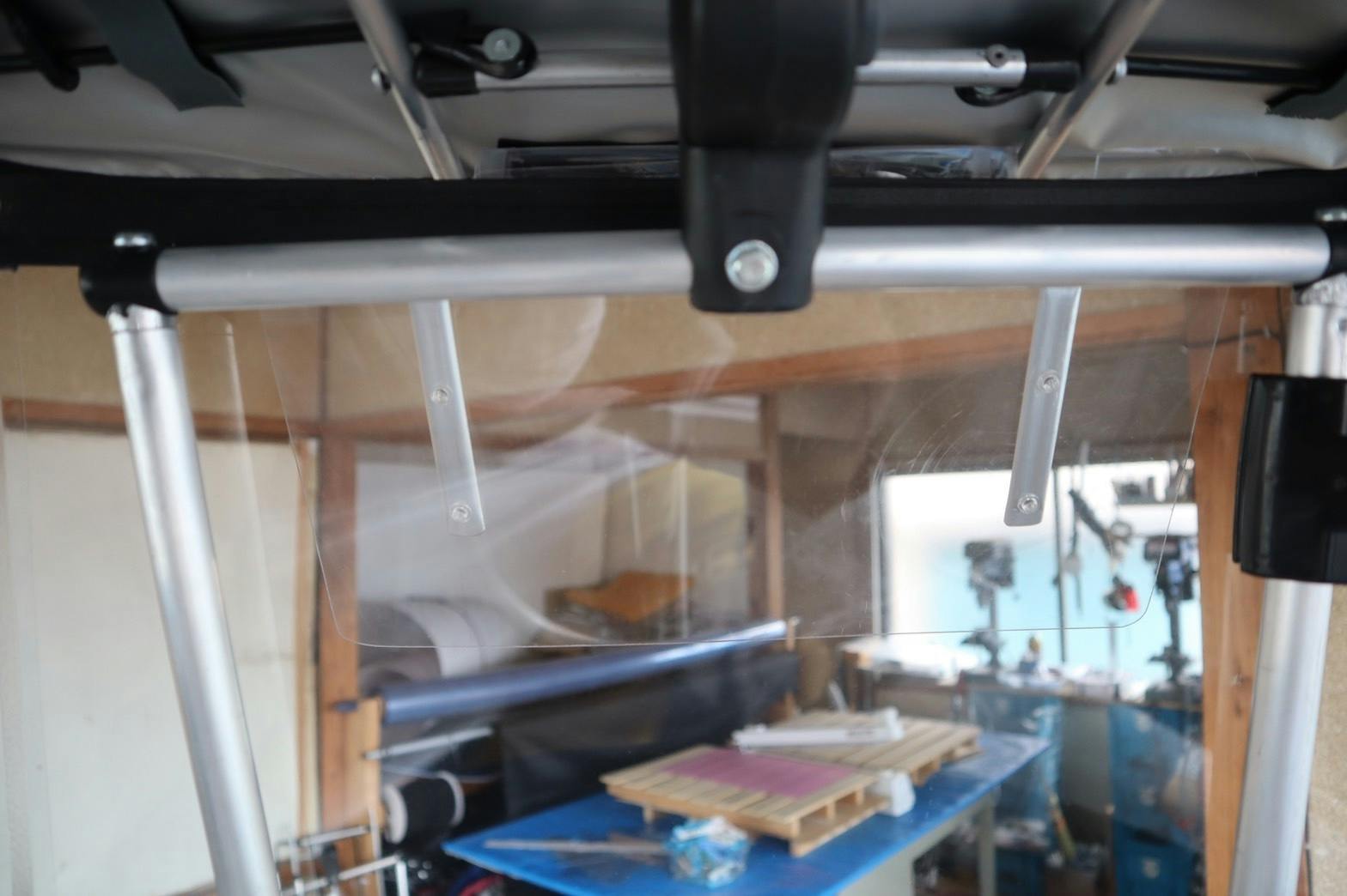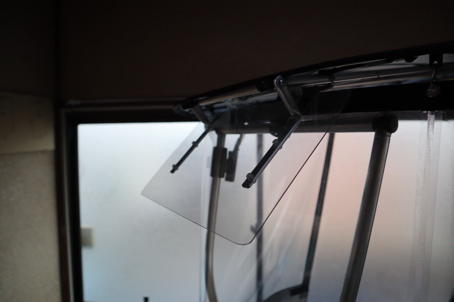 例えば前のクリアシールドと屋根をくっつけてしまいますと、風にあおられてハンドルが取られます。