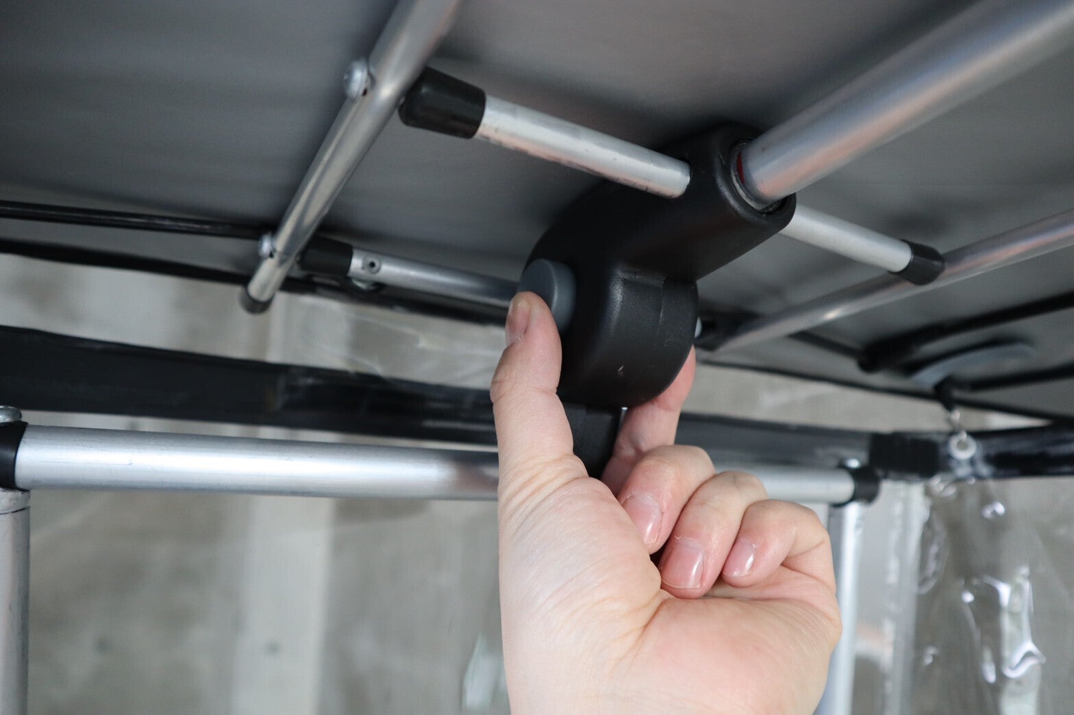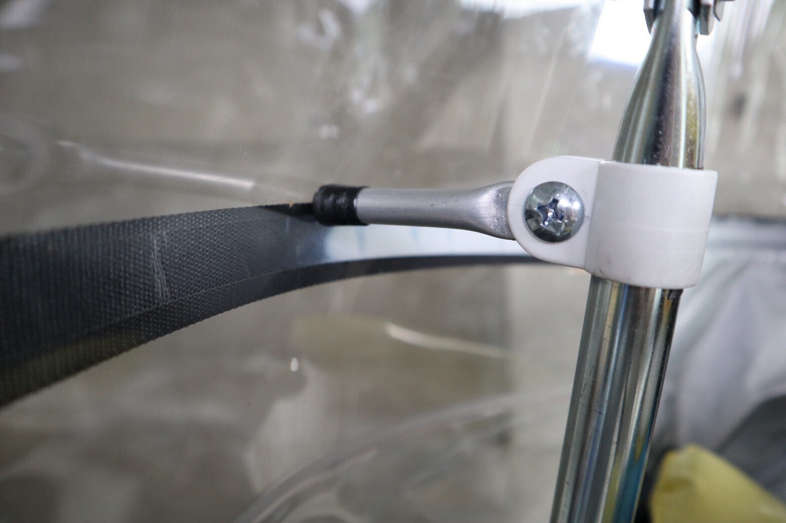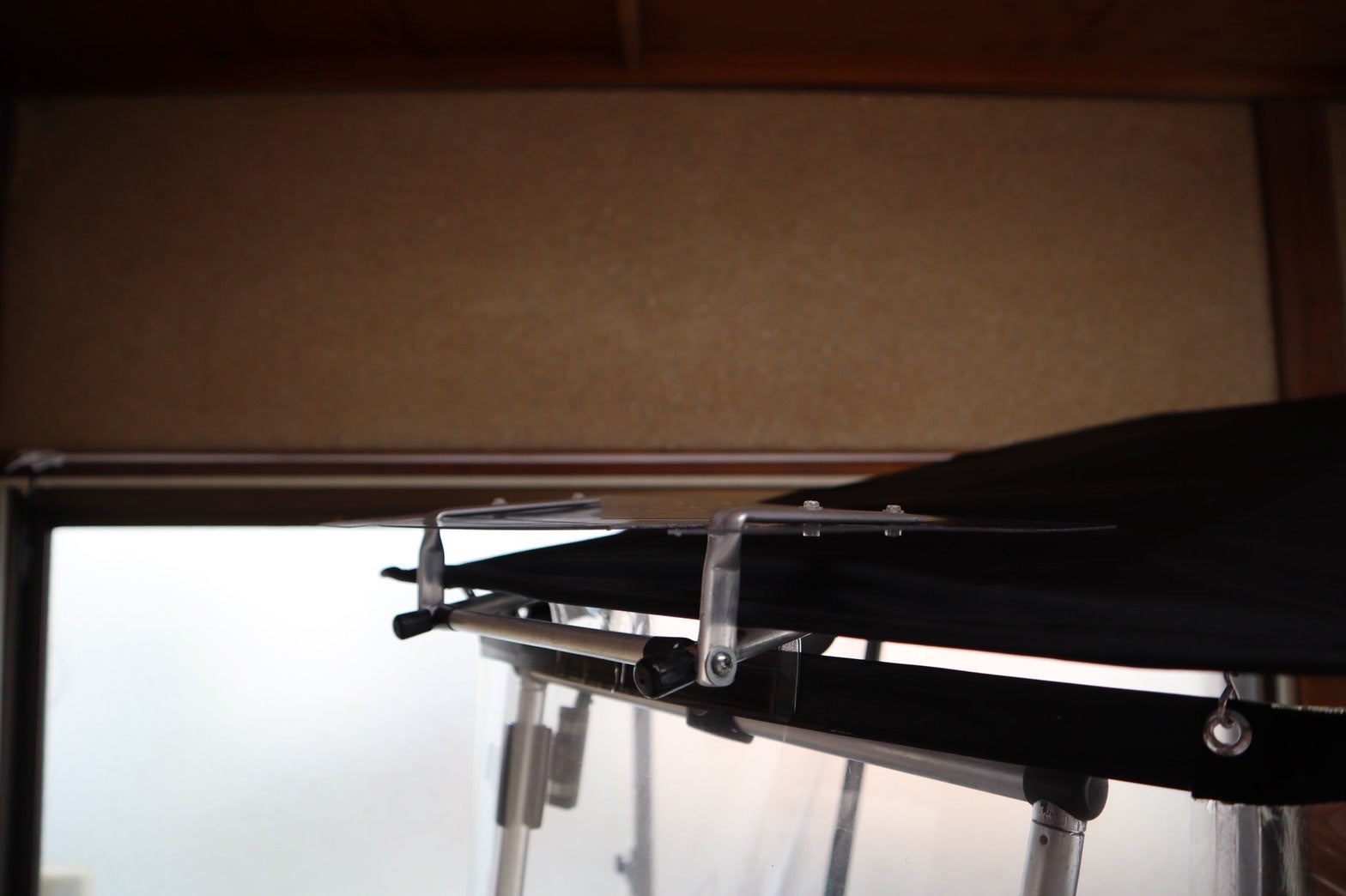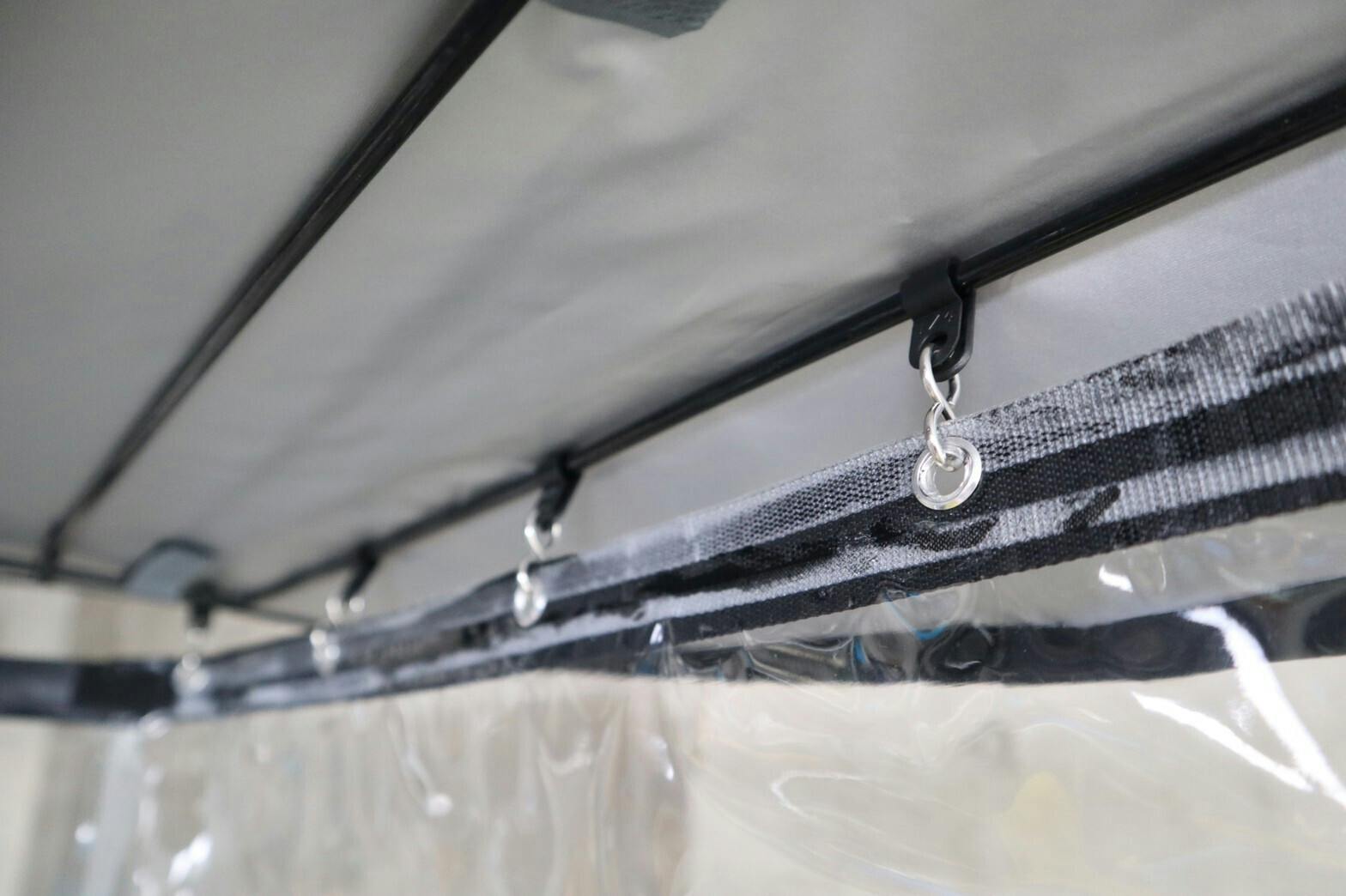 ⑤レールに沿って側面カバーを伸ばし、クリップで止める。