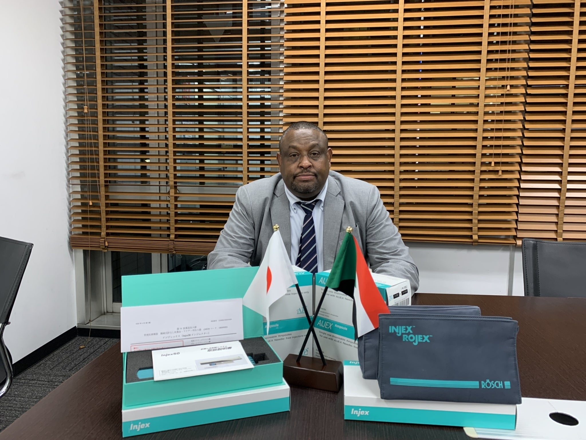 2022年 1月 スーダン共和国 麻酔科医師であり名誉総領事官を通じて、スーダン国内の病院に針無しシリンジセット一式を贈呈致しました。