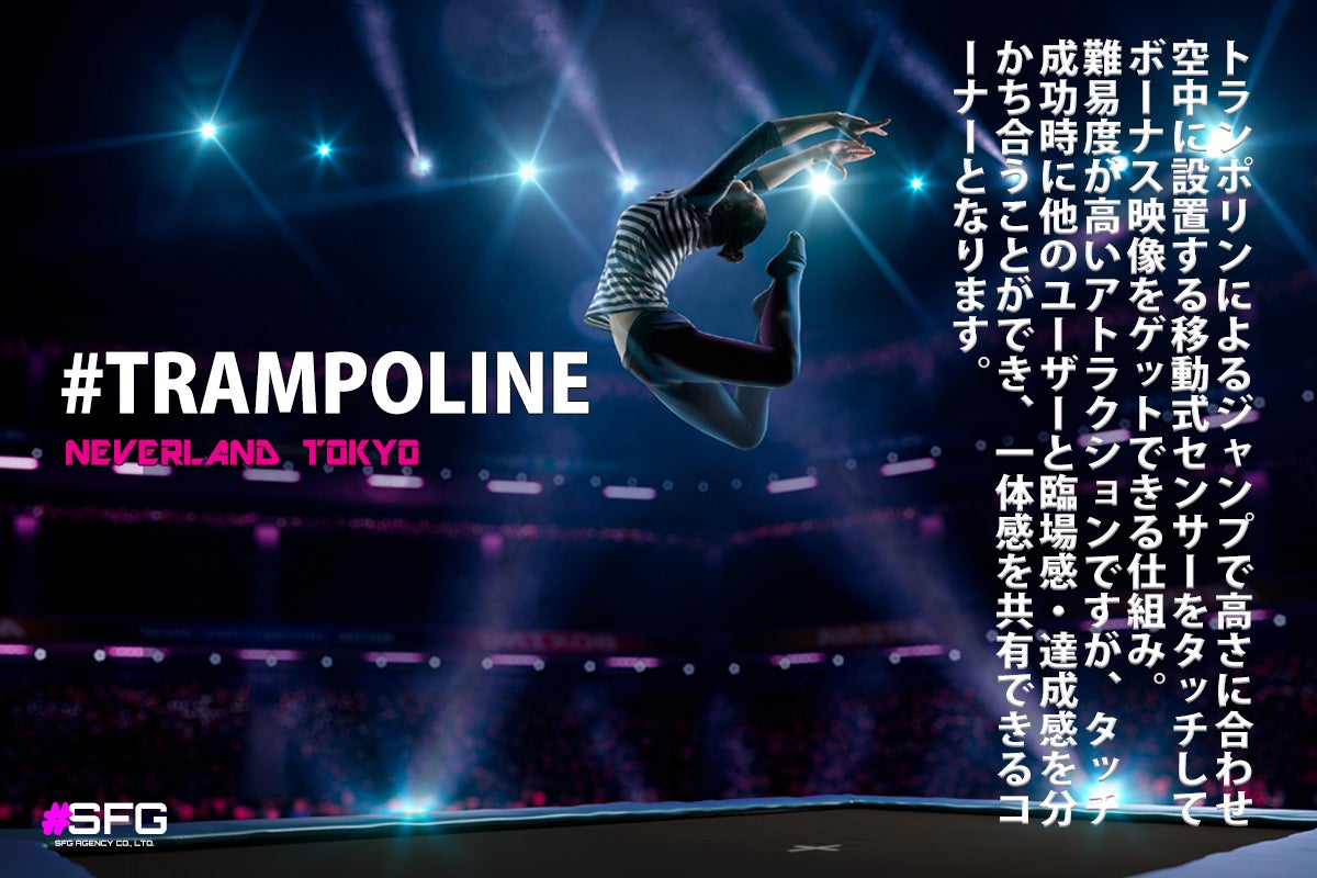 ②TRAMPOLINE、爽快に浮遊感覚を楽しむエリアです。