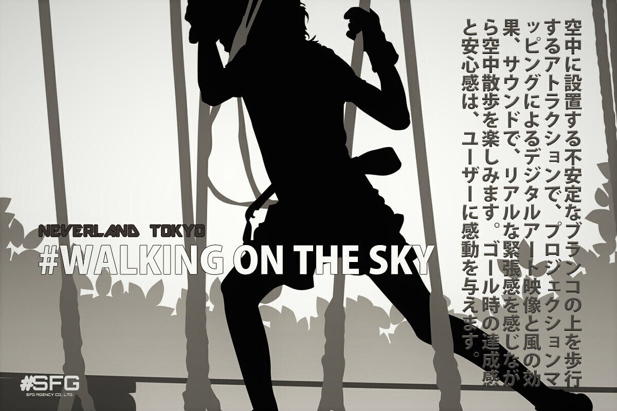 空中に設置する不安定なブランコの上を歩行するアトラクションで、プロジェクションマッピングによるデジタルアート映像と風の効果、サウンドで、リアルな緊張感を感じながら空中散歩を楽しみます。ゴール時の達成感と安心感は、ユーザーに感動を与えます。
