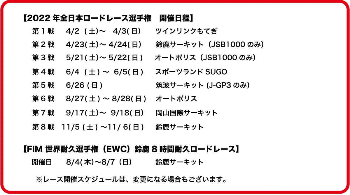 また、1993年より昨シーズンまで、28年連続で「全日本ロードレース選手権」に参戦にあたっては本当に多くの企業・スポンサー・団体、サポートしてくださる皆様の数えきれない支援・応援をいただき心から感謝を申し上げます。