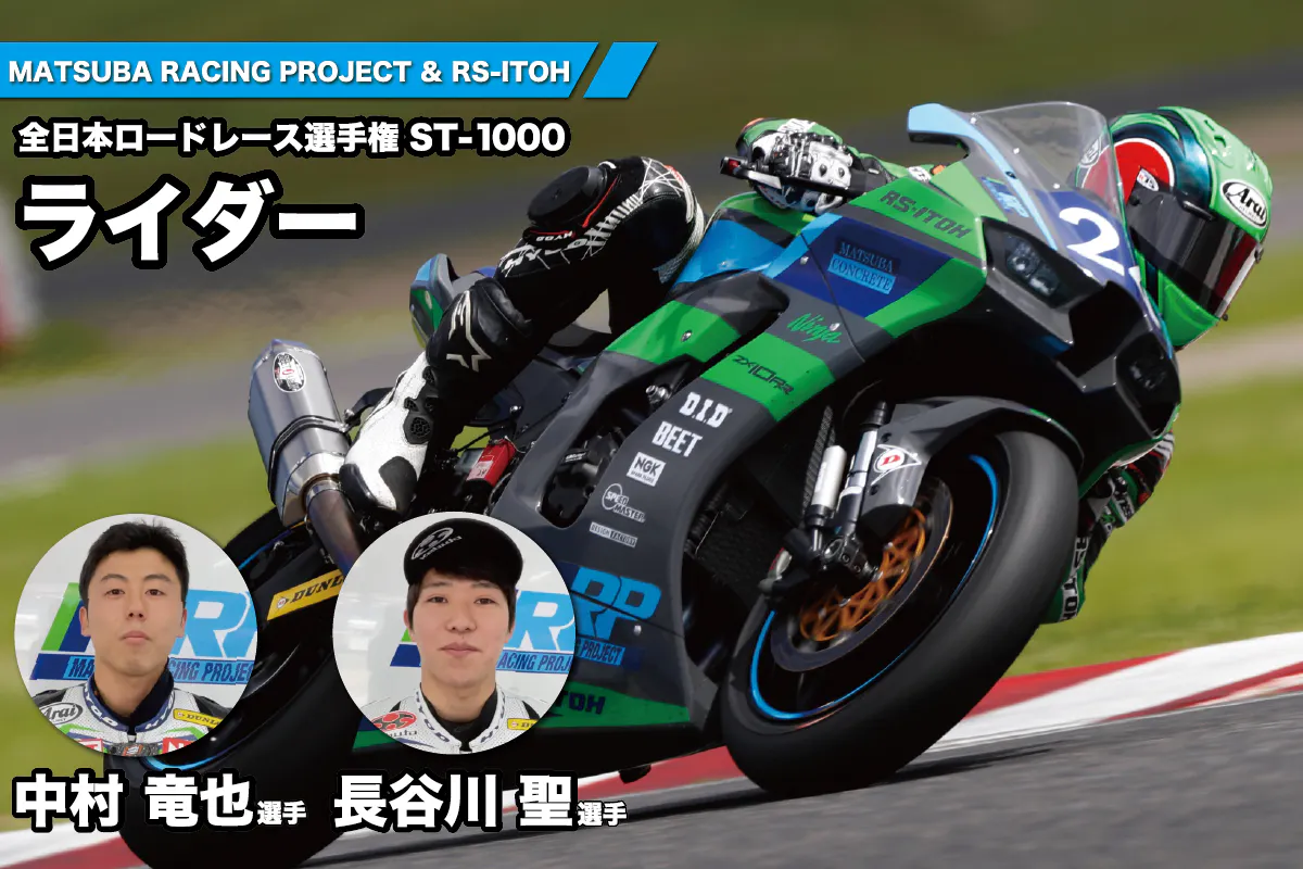 「ST-1000」クラスは、「MATSUBA RACING PROJECT & RS-ITOH」から、「ST600」からステップアップする「中村 竜也」と2019年J-GP3クラスで全日本チャンピオン獲得経験のある「長谷川 聖」を起用し、フル参戦いたします。2人共、2000年生まれの21歳。若手ライダーの育成も含め、全力で戦って参ります。